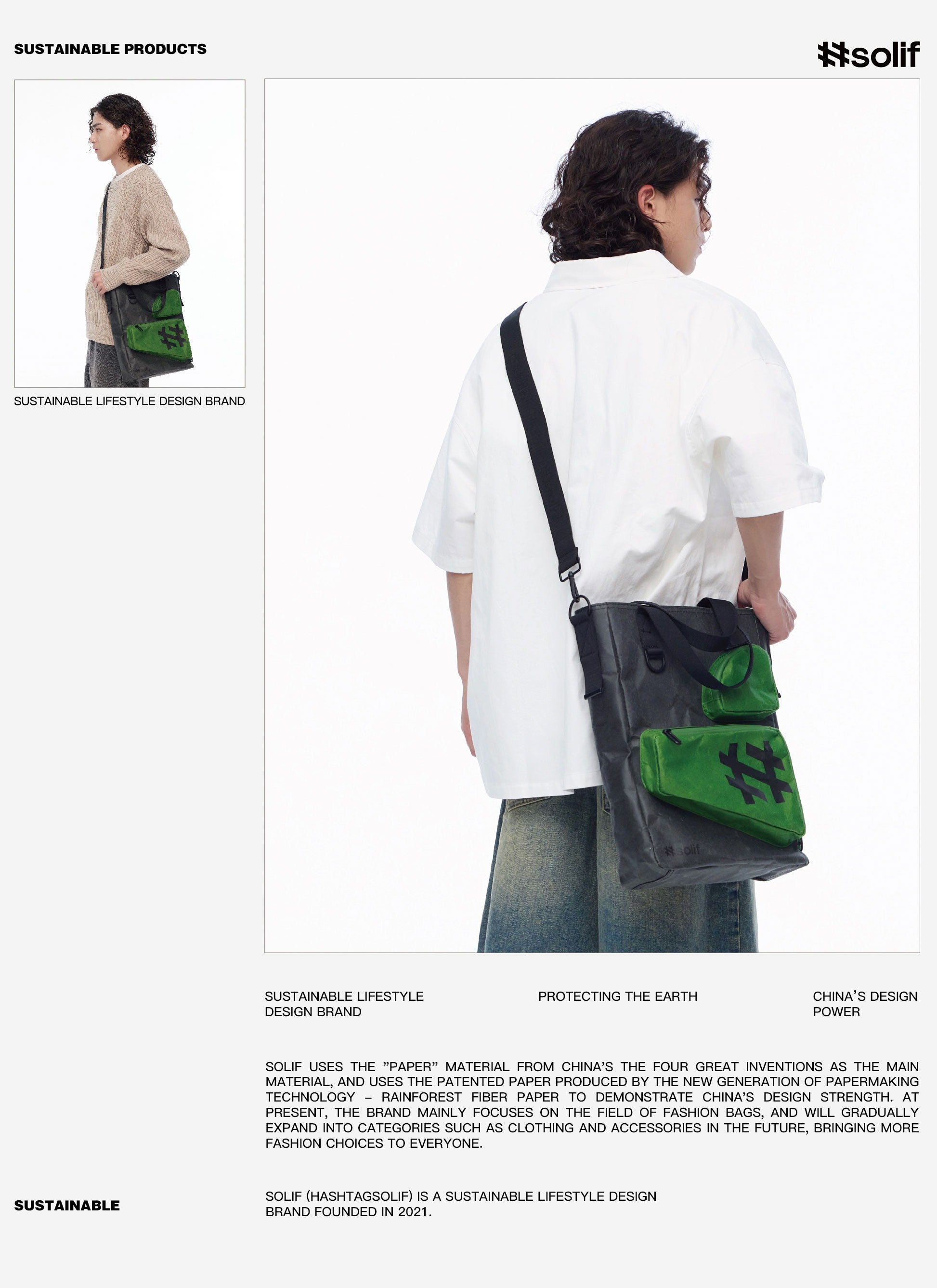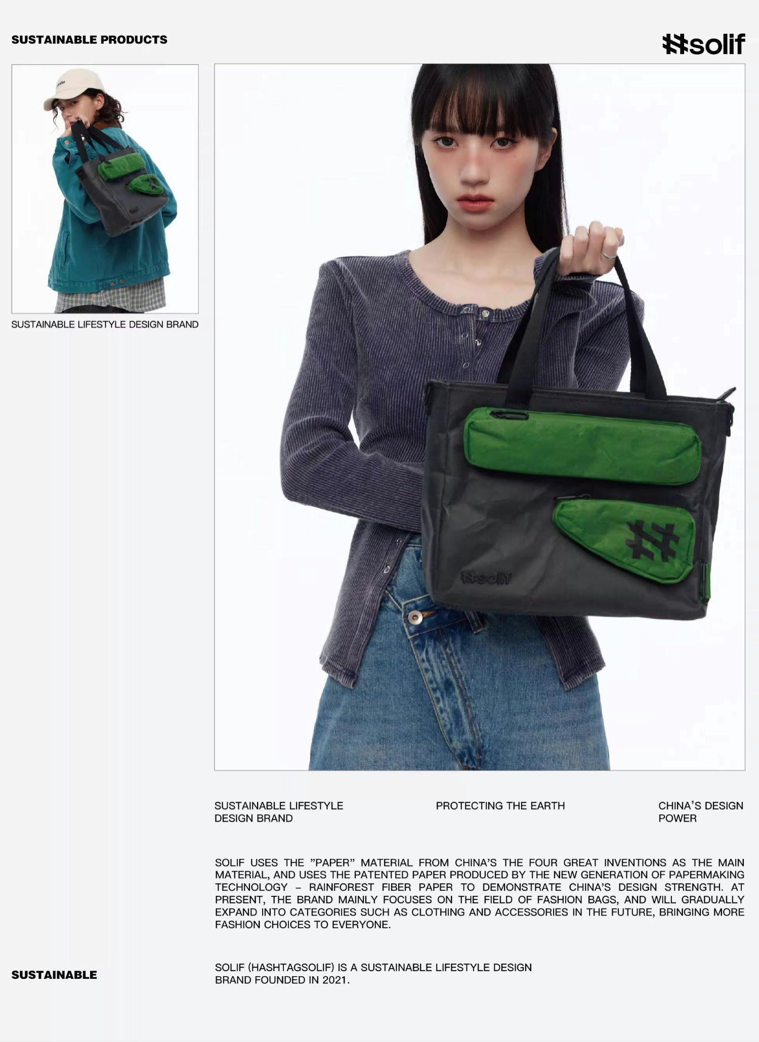 「##Solif Forest(ハッシュタグソリフ・フォレスト)」シリーズは、「紙素材」を使用した斬新なデザインのバッグ。