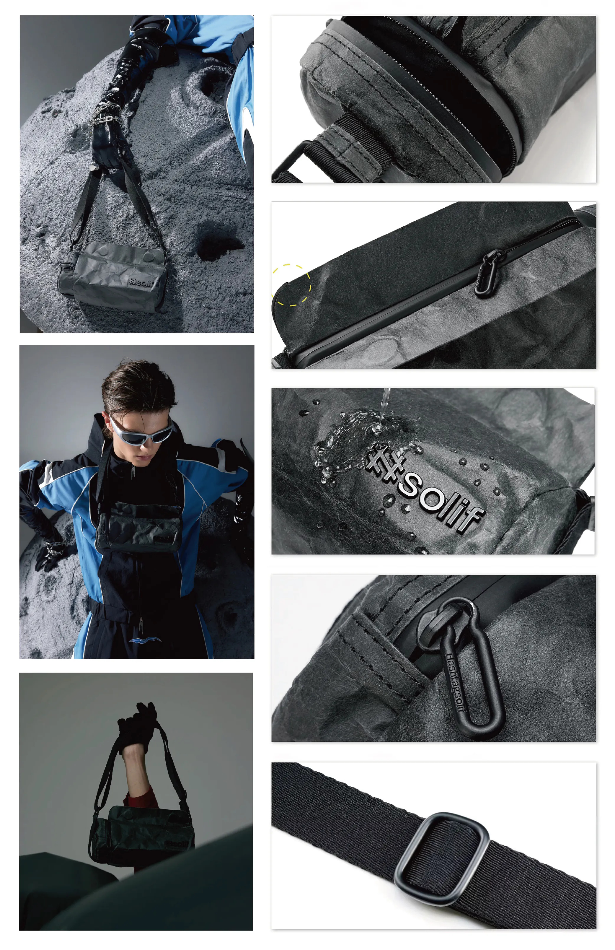 ##Solifは汚れや水を弾く仕様と止水ファスナーを採用しており、雨の日でも中の物が濡れにくいデザインです。野外活動はもちろん、日常生活での使用にも最適なアイテムです。