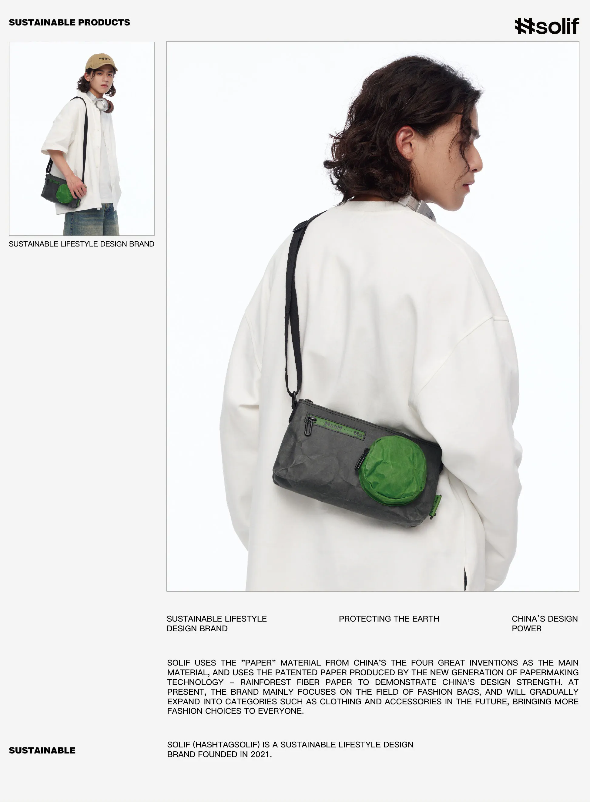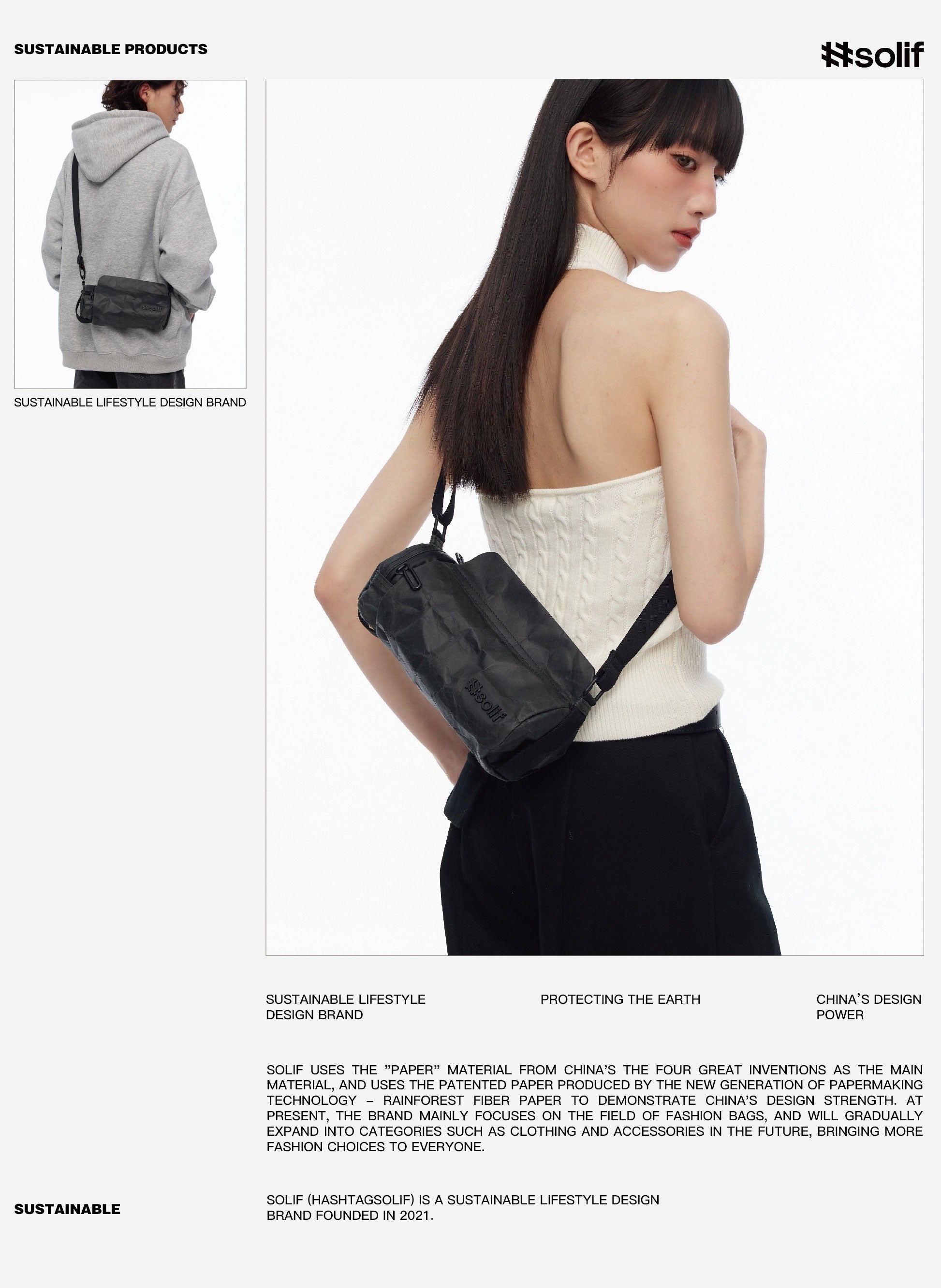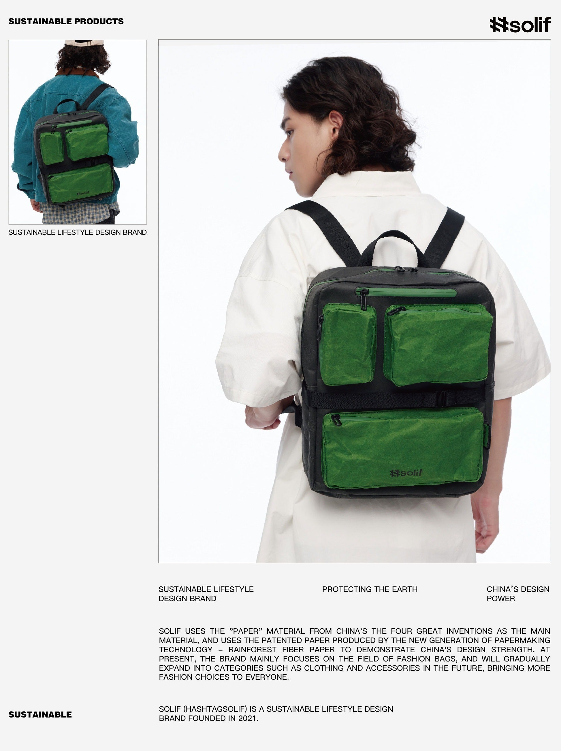 「##Solif」バッグの表面はブラジルとチリから採取された天然パルプで、動物や環境に優しい素材を積極的に使用しています。