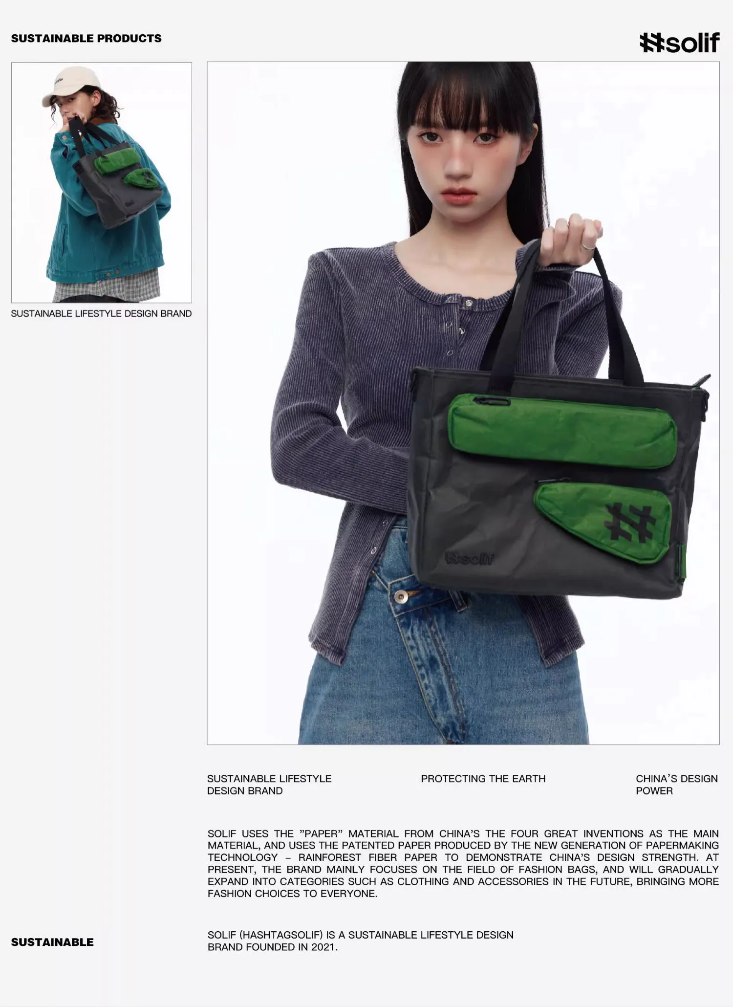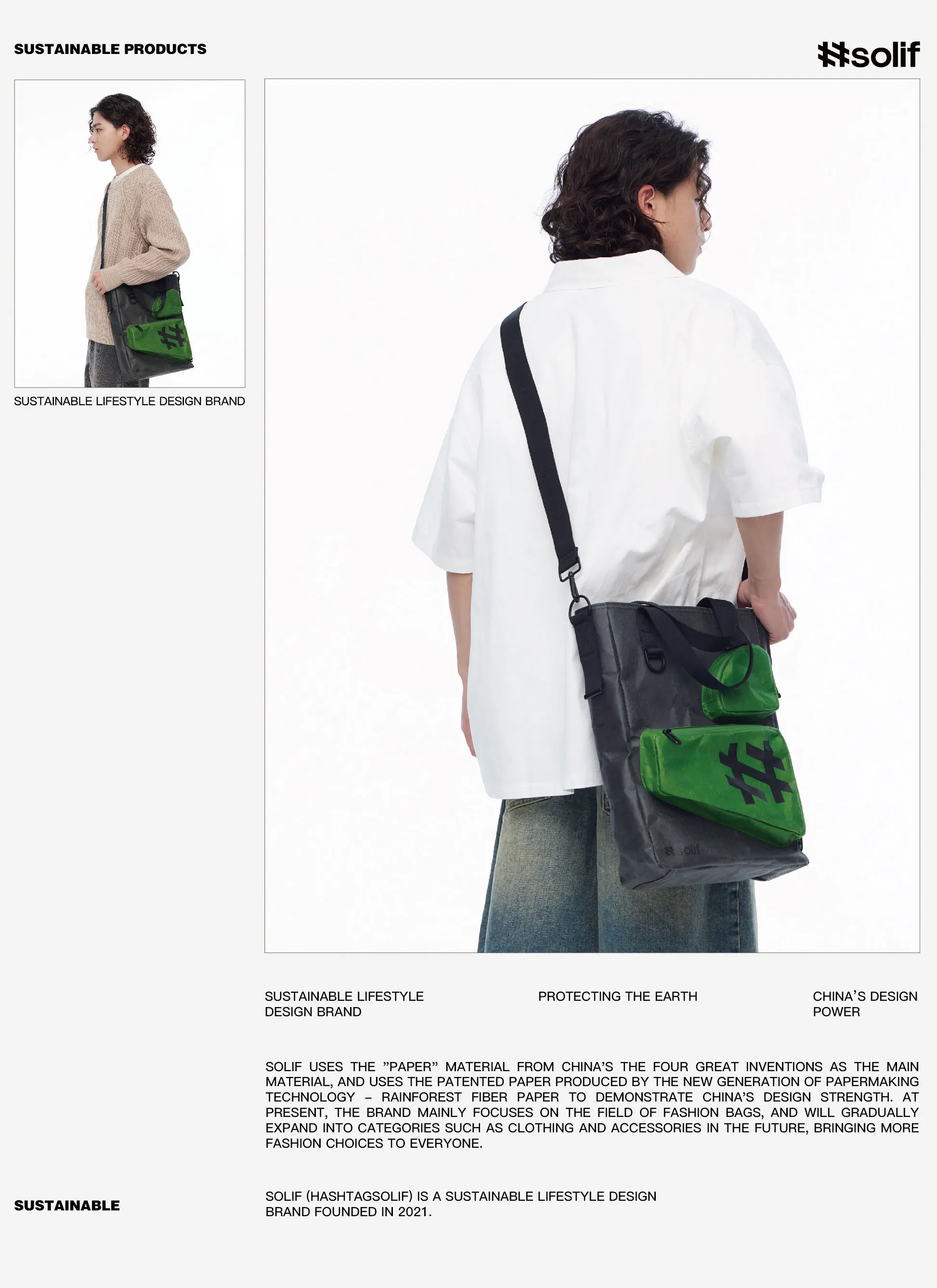地球や環境に悪影響を与える素材の代わりに、持続可能な方法でライフスタイルの美学から生まれた「##Solif(ハッシュタグソリフ)」は、エコフレンドリーでかつファッショナブルな方法で地域を癒す理念に基づいたのバッグブランドです。