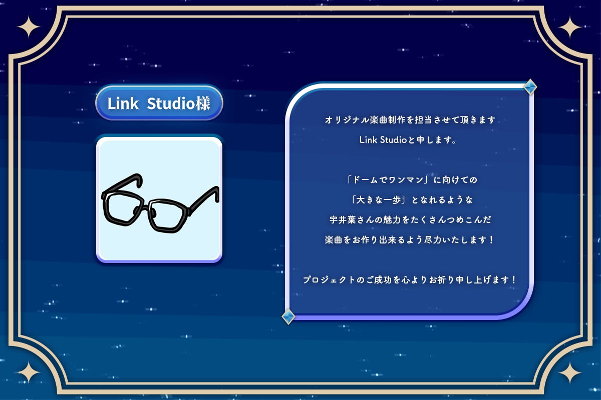 今回のプロジェクトを通して、宇井葉宙の人生の中の主要登場人物としてみんなに力になってもらえたらとっても嬉しいなと思います。