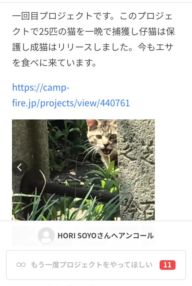 去年三回目のプロジェクトです。https://camp-fire.jp/projects/view/680267?utm_campaign=cp_po_share_c_msg_mypage_projects_show">https://camp-fire.jp/projects/view/680267?utm_campaign=cp_po_share_c_msg_mypage_projects_sho