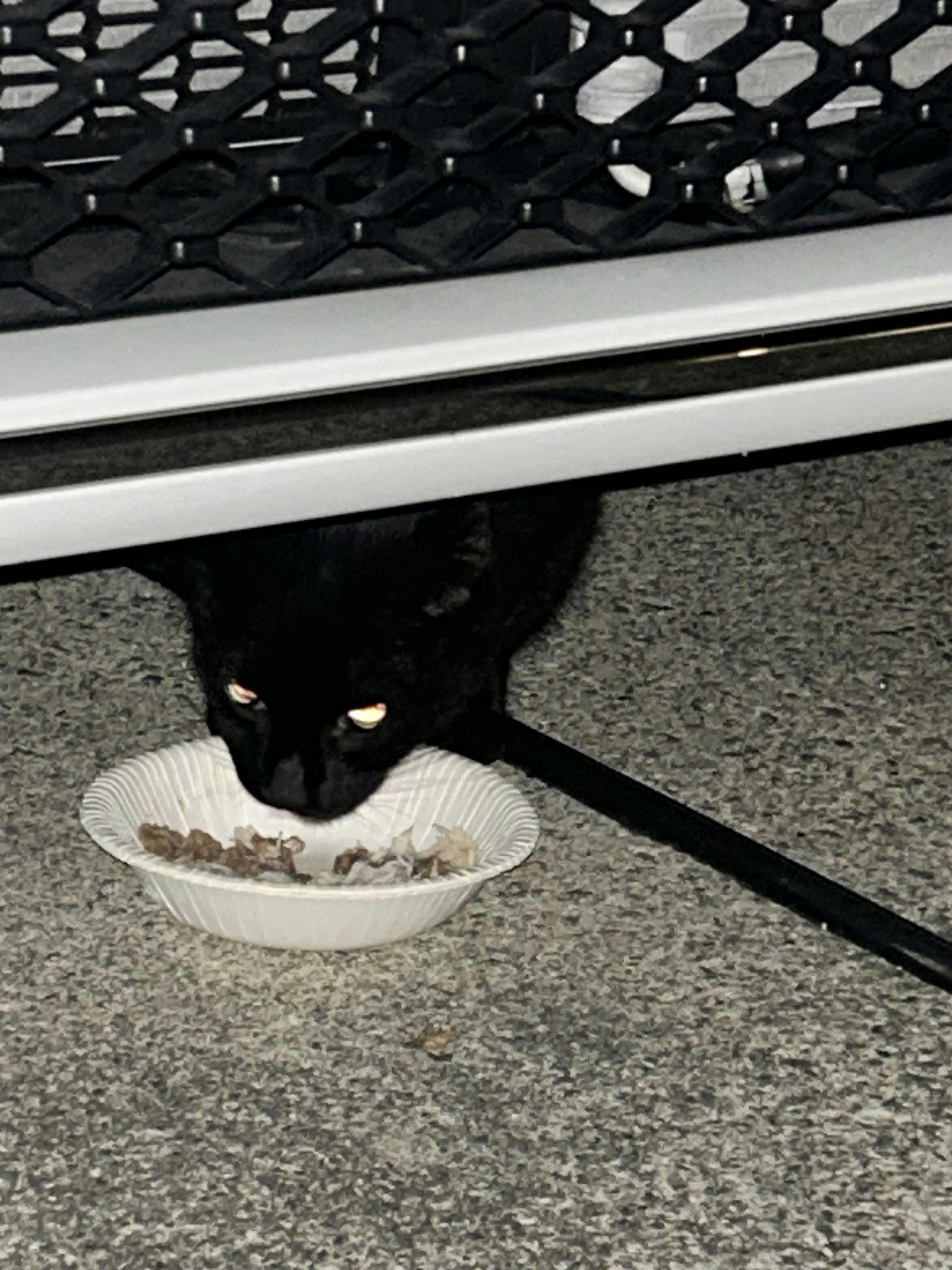 美保さん ありがとうございます。私の家から近い豪邸の庭に住む黒ちゃんが大好きな焼きカツオパウチをあげました