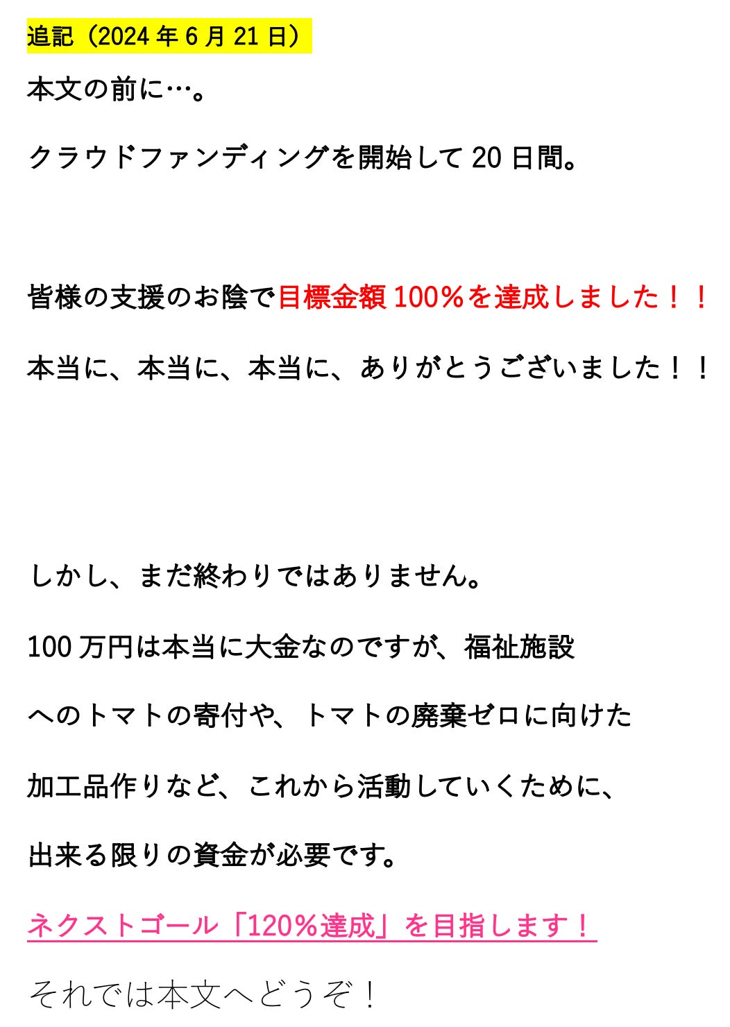 2024年6月 クラウドファンディング終了