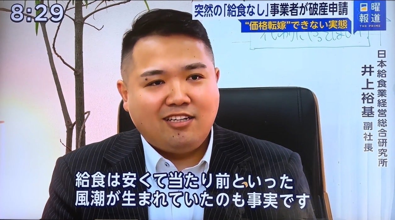 日本テレビ「DayDay.」【令和の給食事情】映像出演 2024年6月14日回/時事通信社・時事ドットコム取材班 「安くて当たり前」はもう終わり?給食に迫る限界◆食のインフラどう守る コメント掲載 2023年12月7日掲載/NewsPicks 【新潮流】赤字の学校給食を救う「3つの取り組み」コメント掲載 2024年1月16日/17日/J-WAVE 81.3FM「STEPONE」スタジオ出演 「日本の給食ビジネス」の問題点に注目! 2023年9月13日放送回 他多数