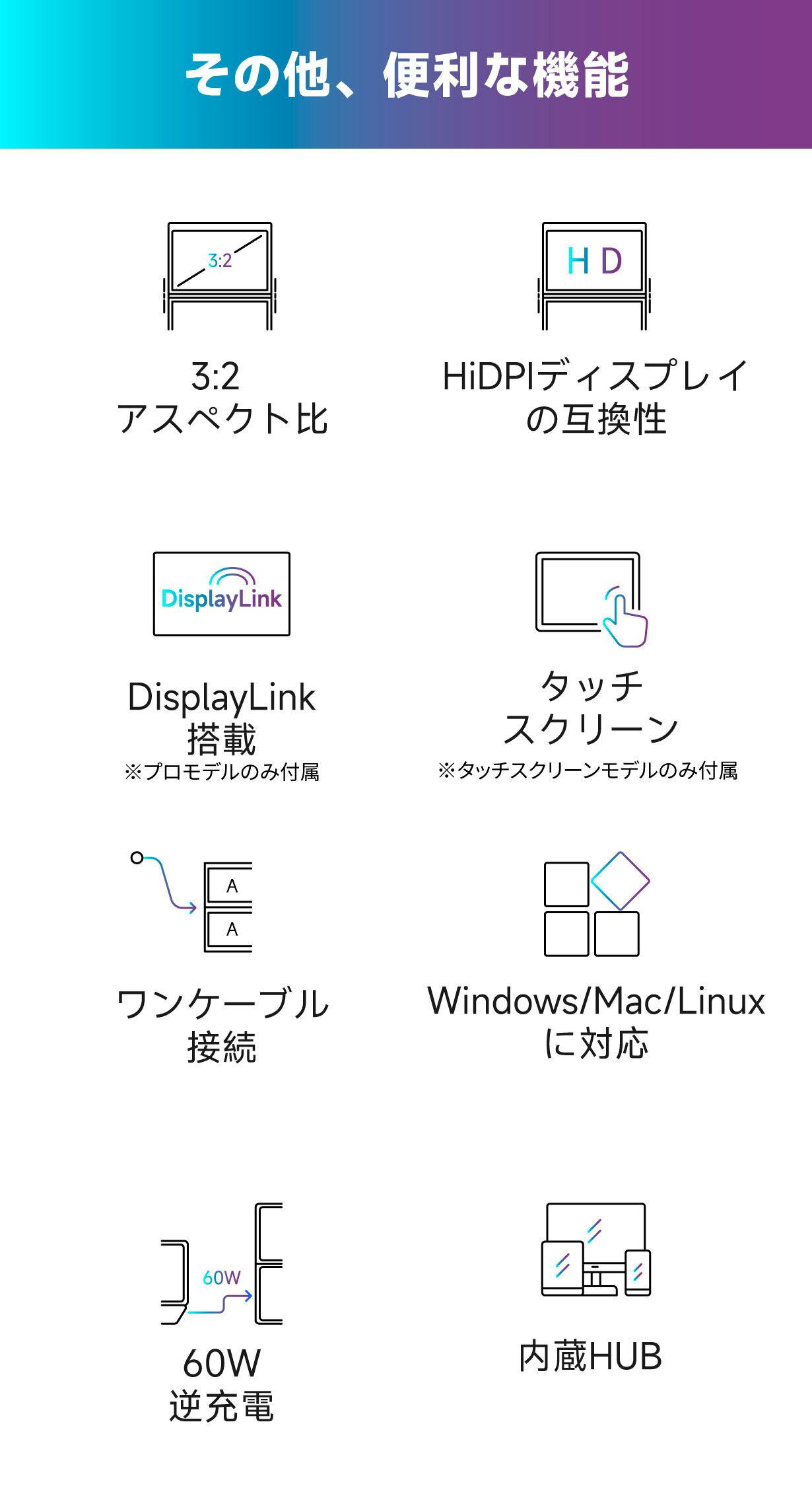 重さやサイズを気にせず、いつでもどこでも二画面の利便性を。