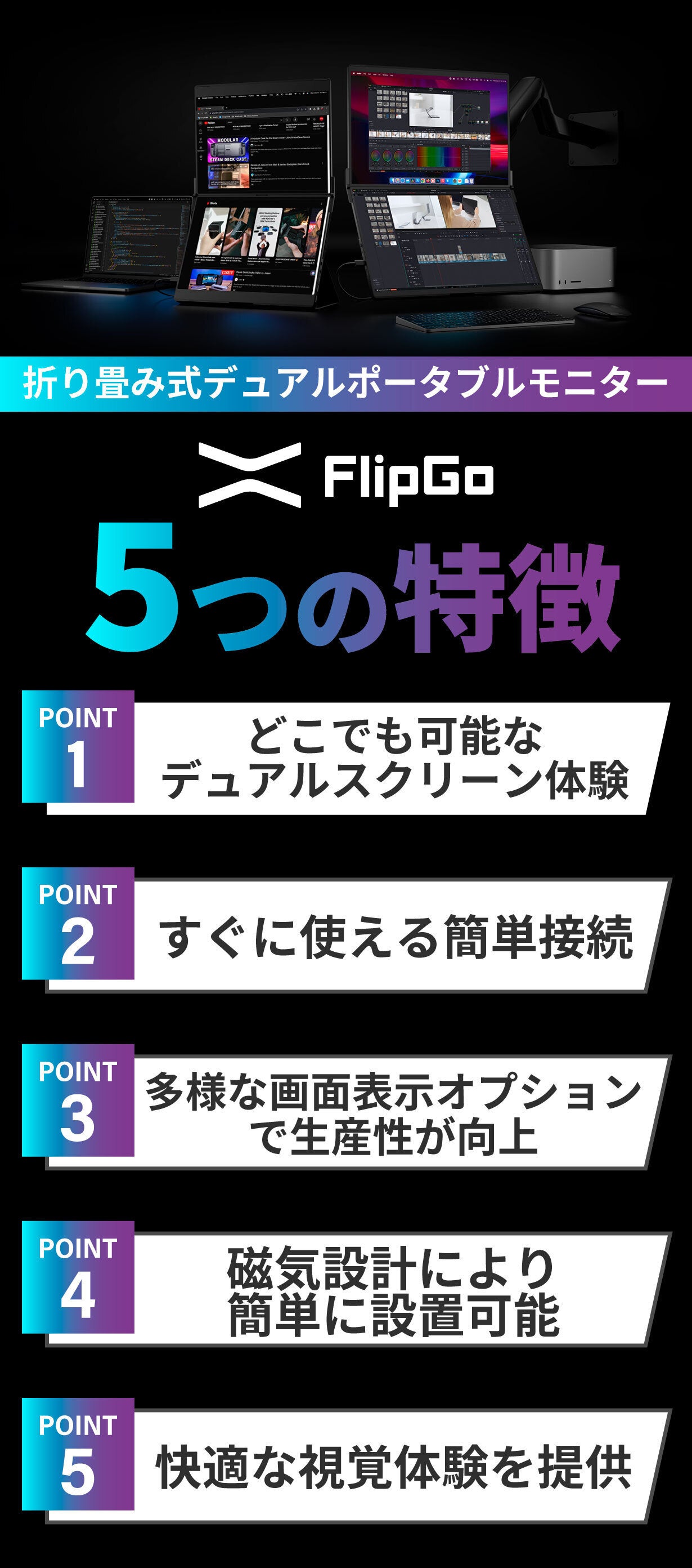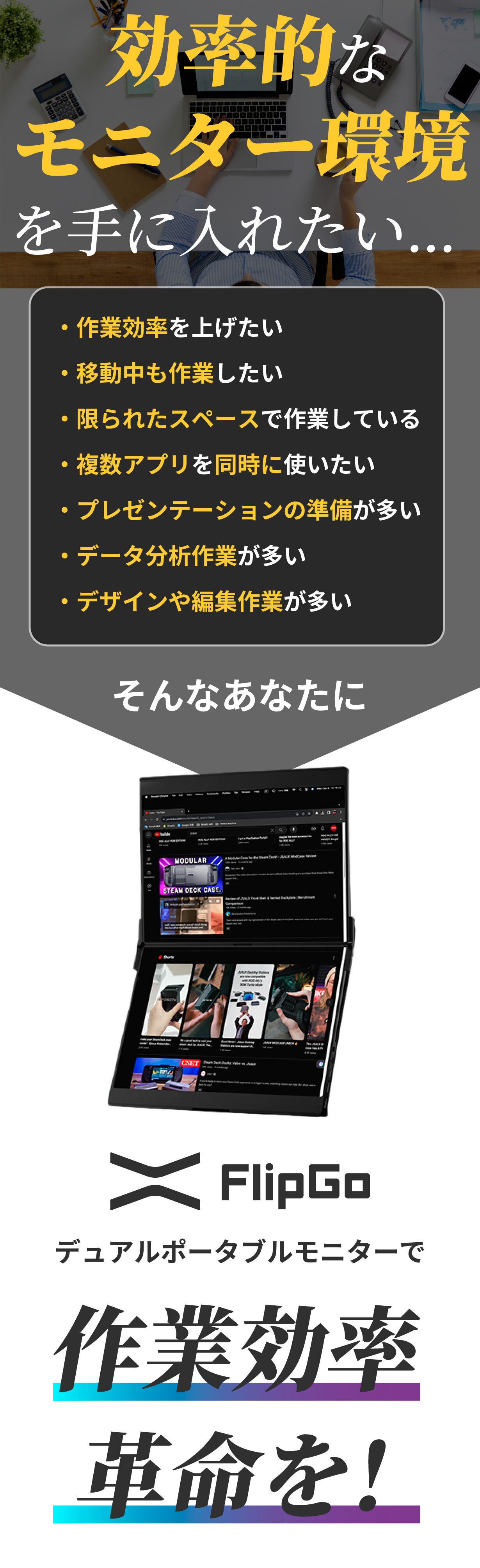 FlipGoは、あなたの作業効率を格段に向上させるポータブルデュアルスクリーンです。
