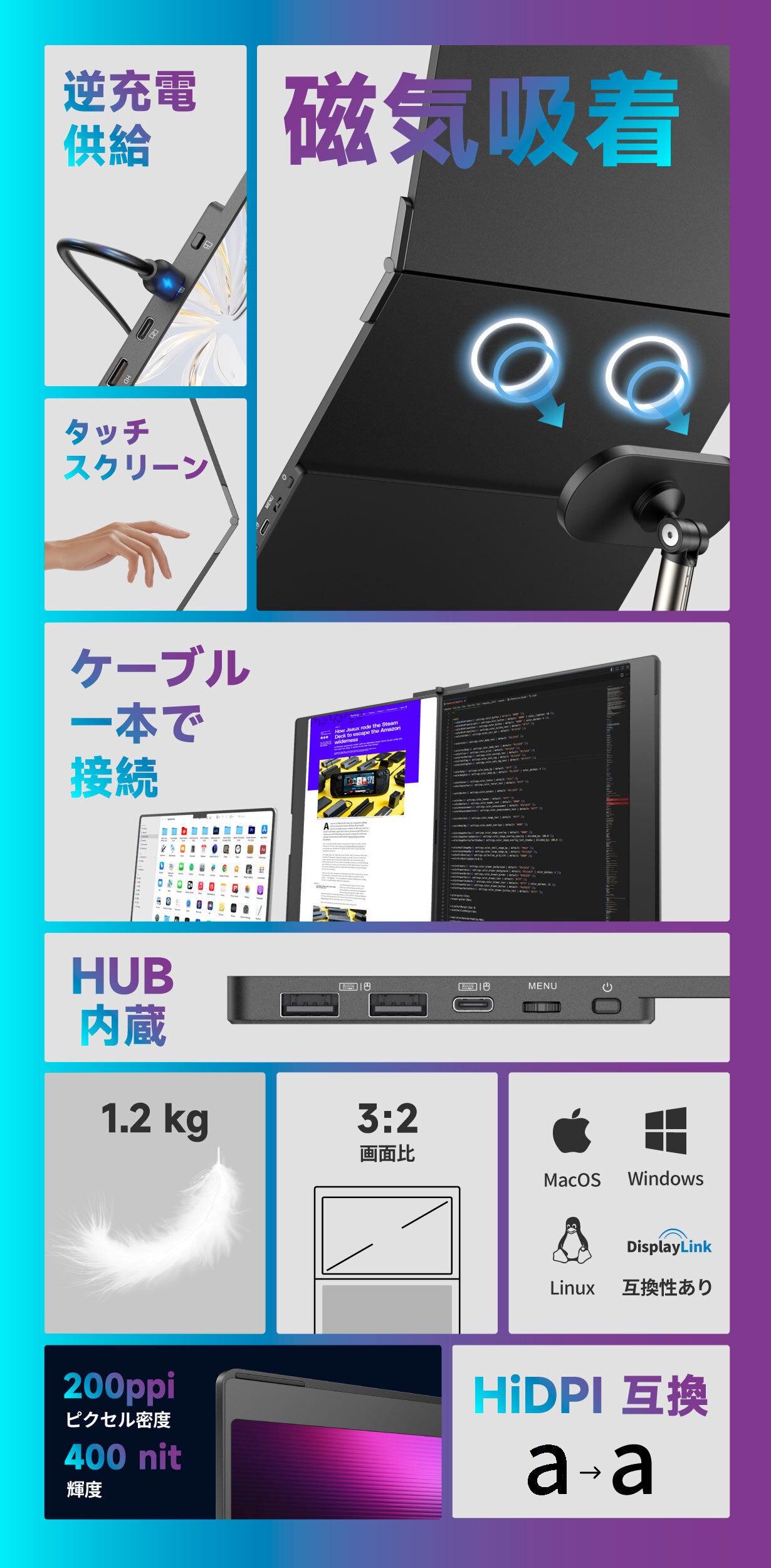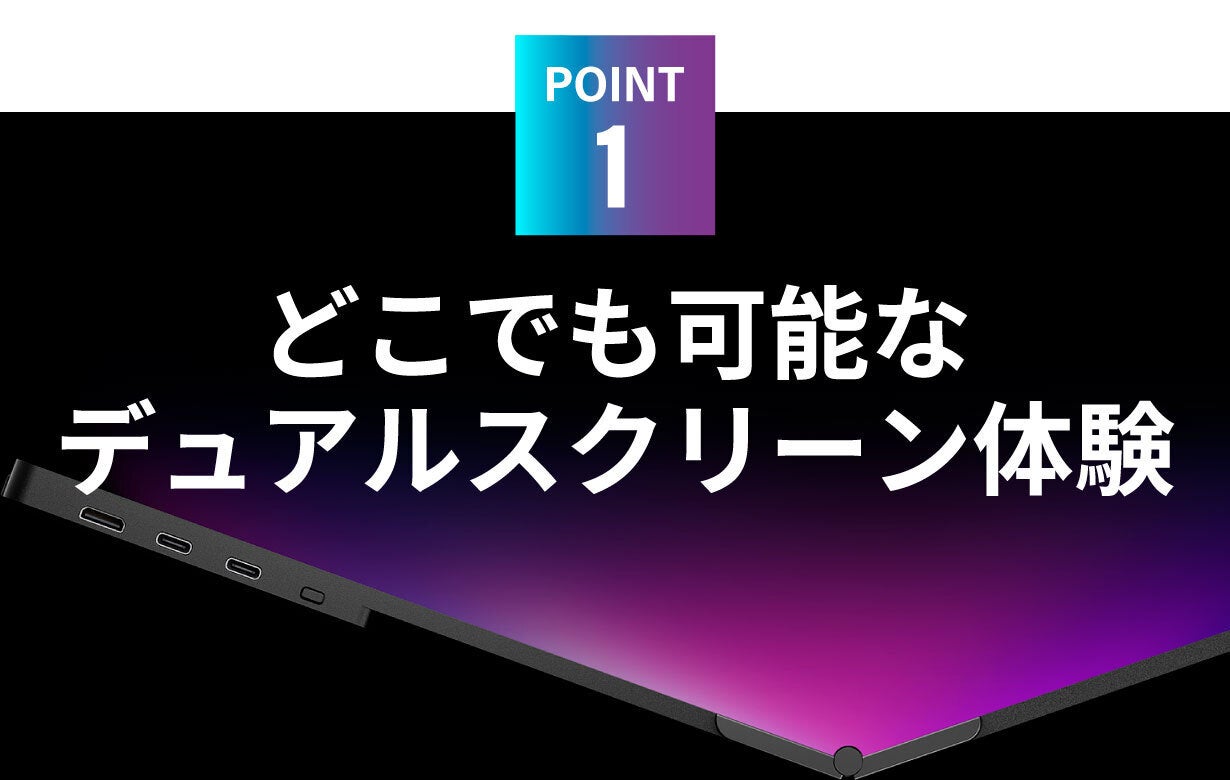 重さやサイズを気にせず、いつでもどこでも二画面の利便性を。