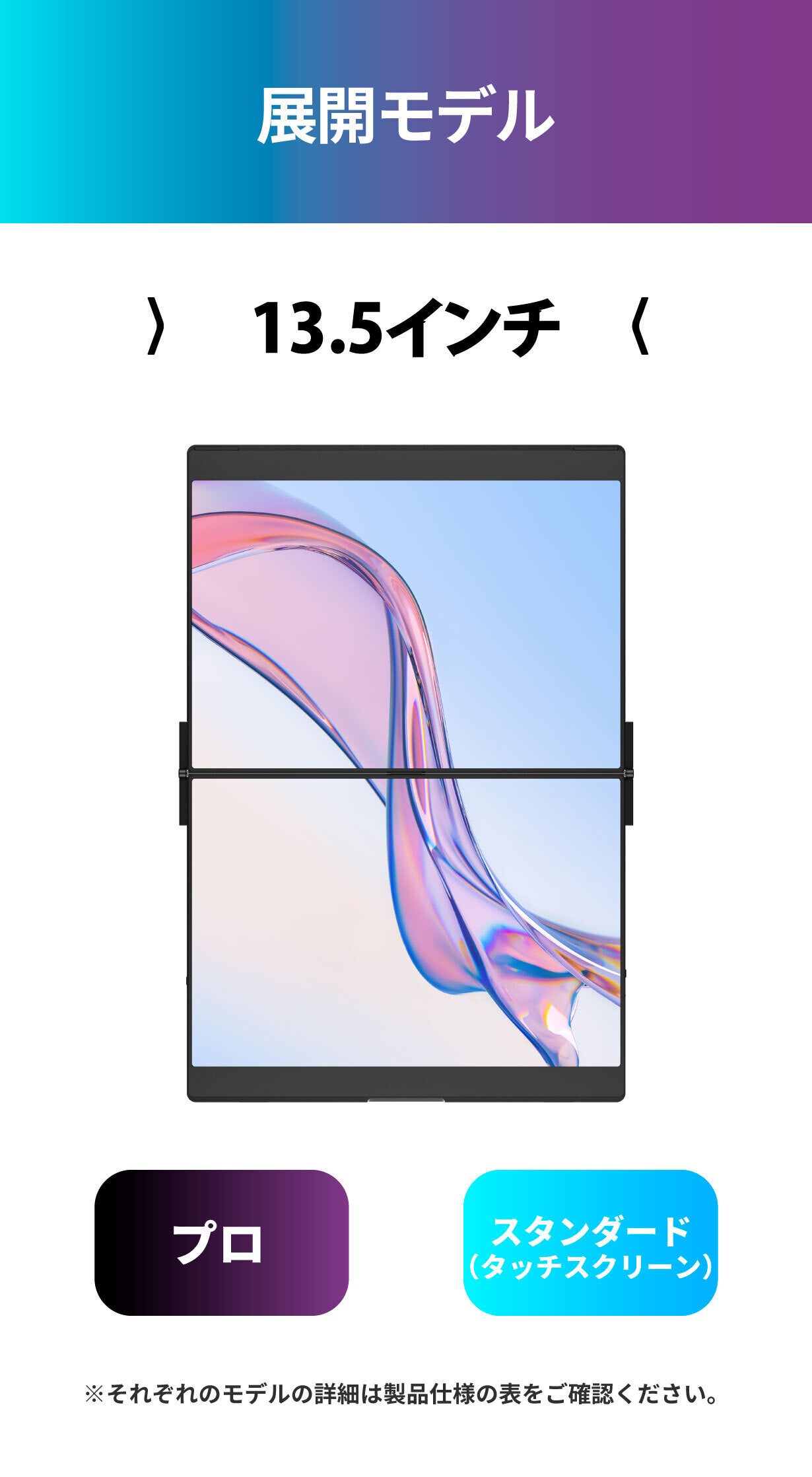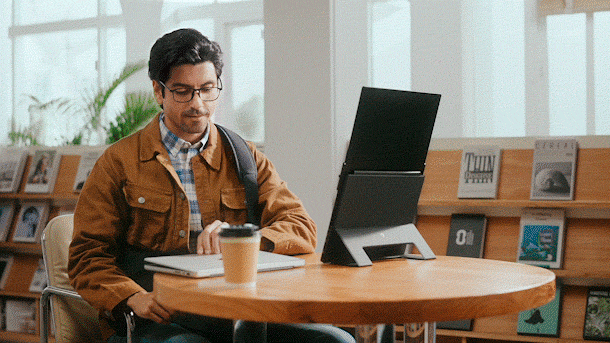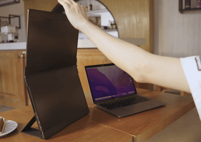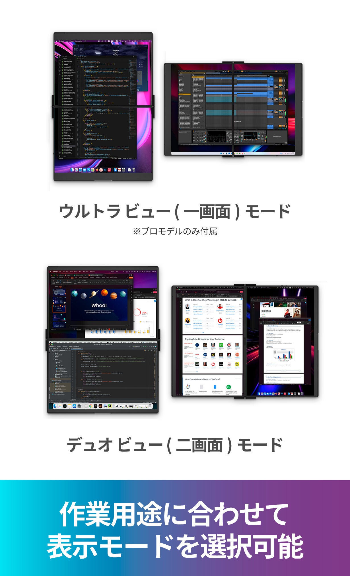 二画面折りたたみ式デザインの為、2つの画面を折りたたみ式に組み合わせることができ、出張やカフェでのリモートワーク、休憩時間のエンターテインメントなど、様々なシーンで活躍します。