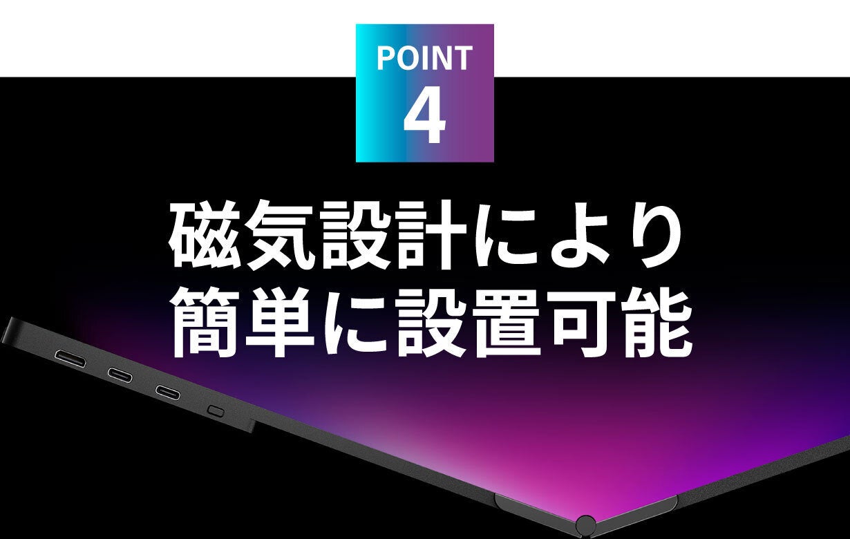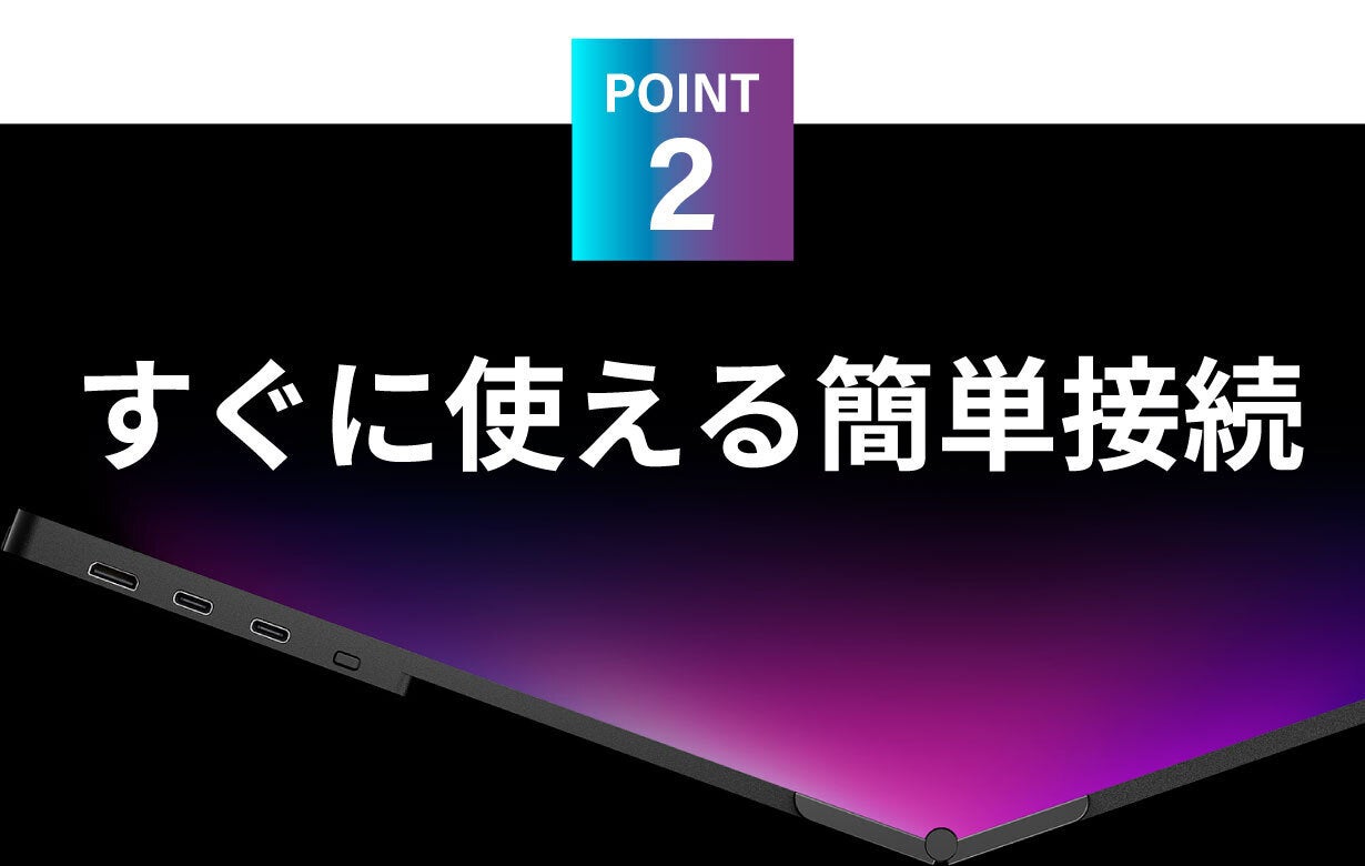 USB Type-C一本で簡単に接続でき、特別な設定やソフトウェアのインストールは不要です。
