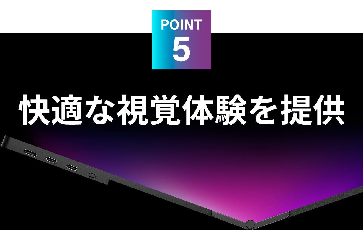 長時間の作業でも目の疲れを軽減し、より快適な視覚体験を提供します。