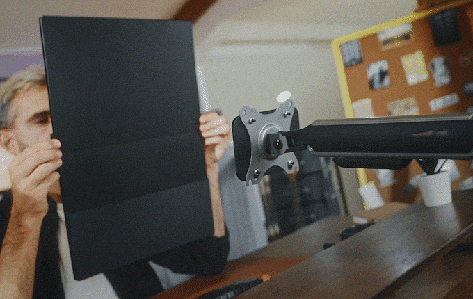 仕事から帰ったらモニターをアームにはめ込み、外出時には素早く簡単に取り外して持ち運ぶことができます。