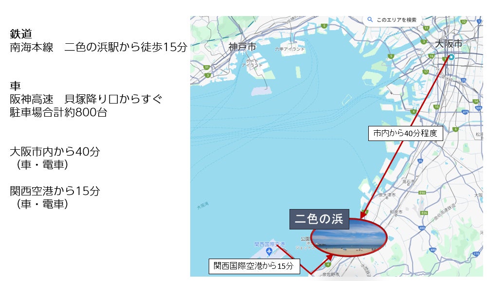 ここ二色の浜は大阪市及び関空から最も近い海水浴場となっておりアクセスが便利です。