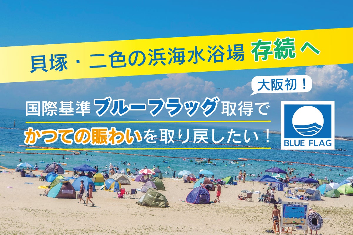このままでは二色の浜海水浴場の存続が危ぶまれることになるため、フランスの国際認証制度「ブルーフラッグ」を取得し、大阪発の国際認証ビーチとして綺麗で安全、誰もが楽しめる海水浴場として賑わいを取り戻していつまでも持続することを目指すプロジェクトを立ち上げました。