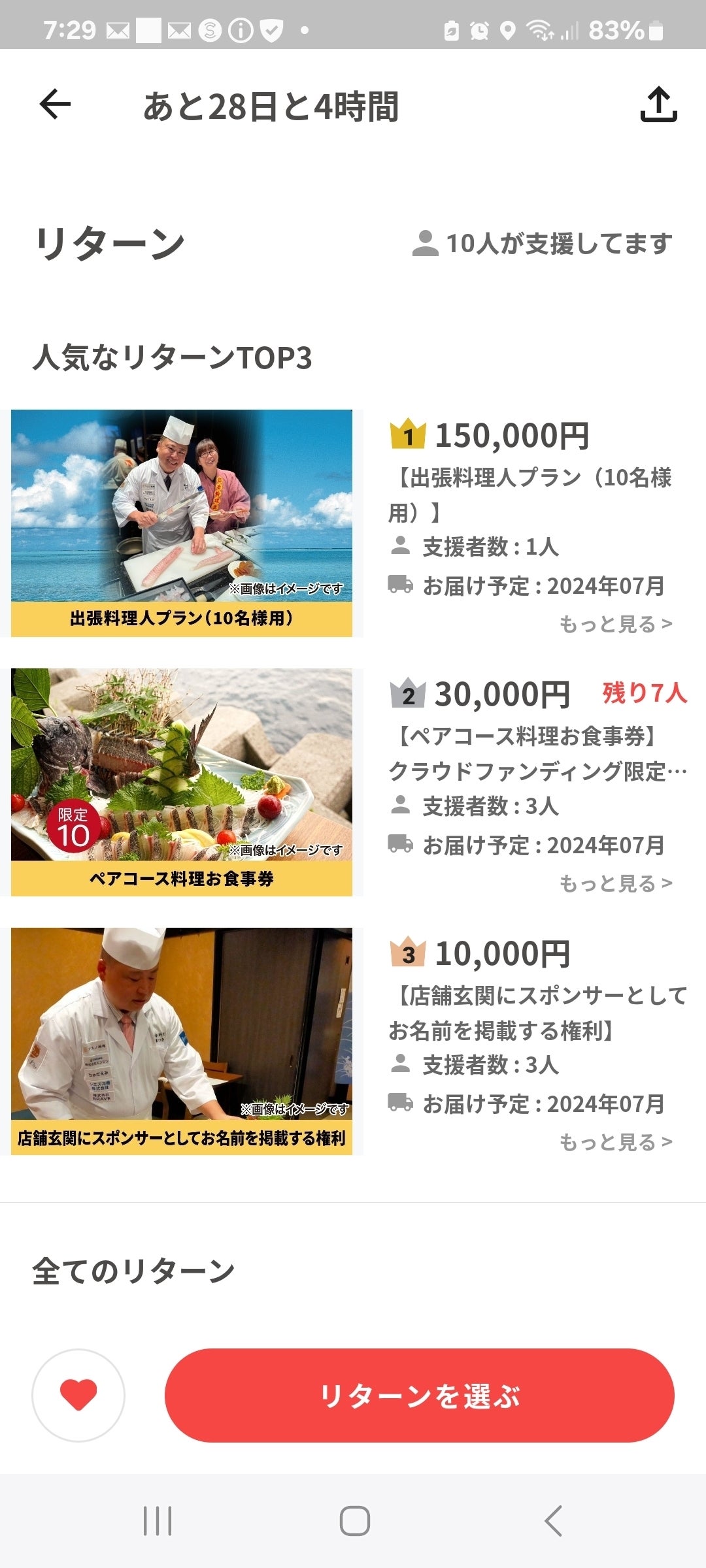 是非他の方にも出張料理のリターンを選んで頂きたいです。