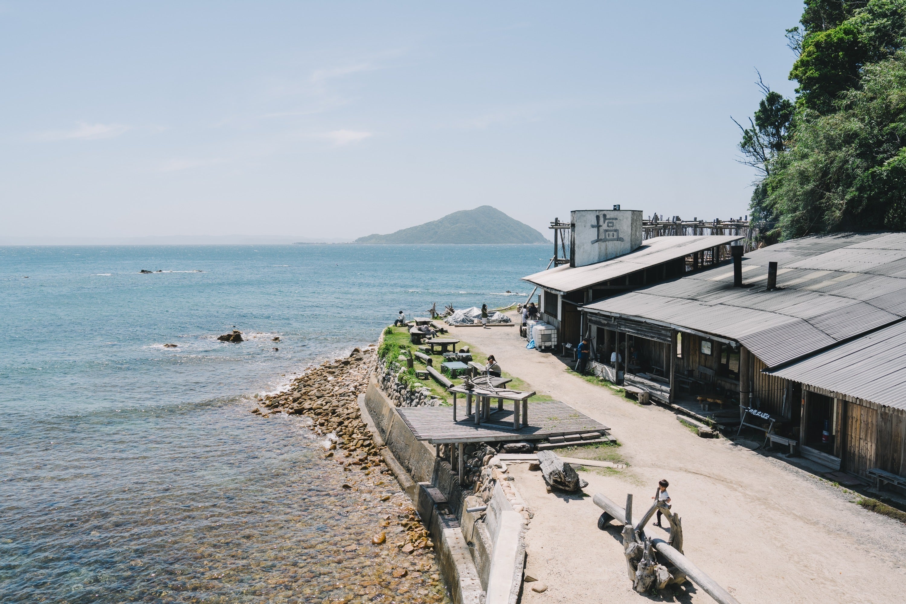 福岡県糸島市の糸島半島西端。青く透き通る海と、緑豊かな山に面した場所に、製塩所「工房とったん」を構え、塩づくりをしています。工房では、伝統的な製塩方法である「立体式塩田」を見ることもできます。週末には美しい海を眺めながら、工房で販売する「しおをかけてたべるプリン」を食べに来てくださるお客様で賑わいます。