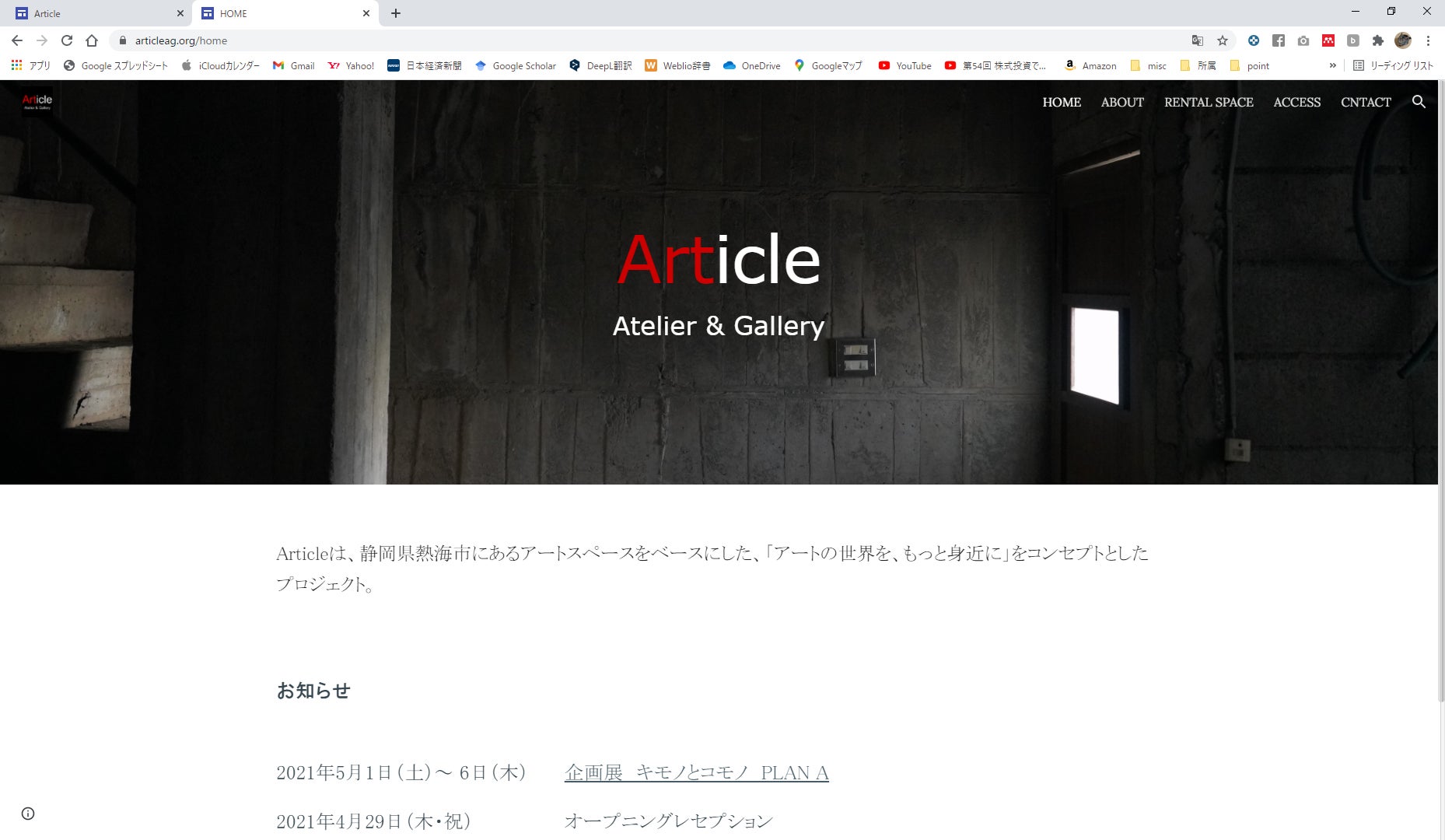 オープンにむけて、アートスペース「Article」のwebサイトを公開しました。