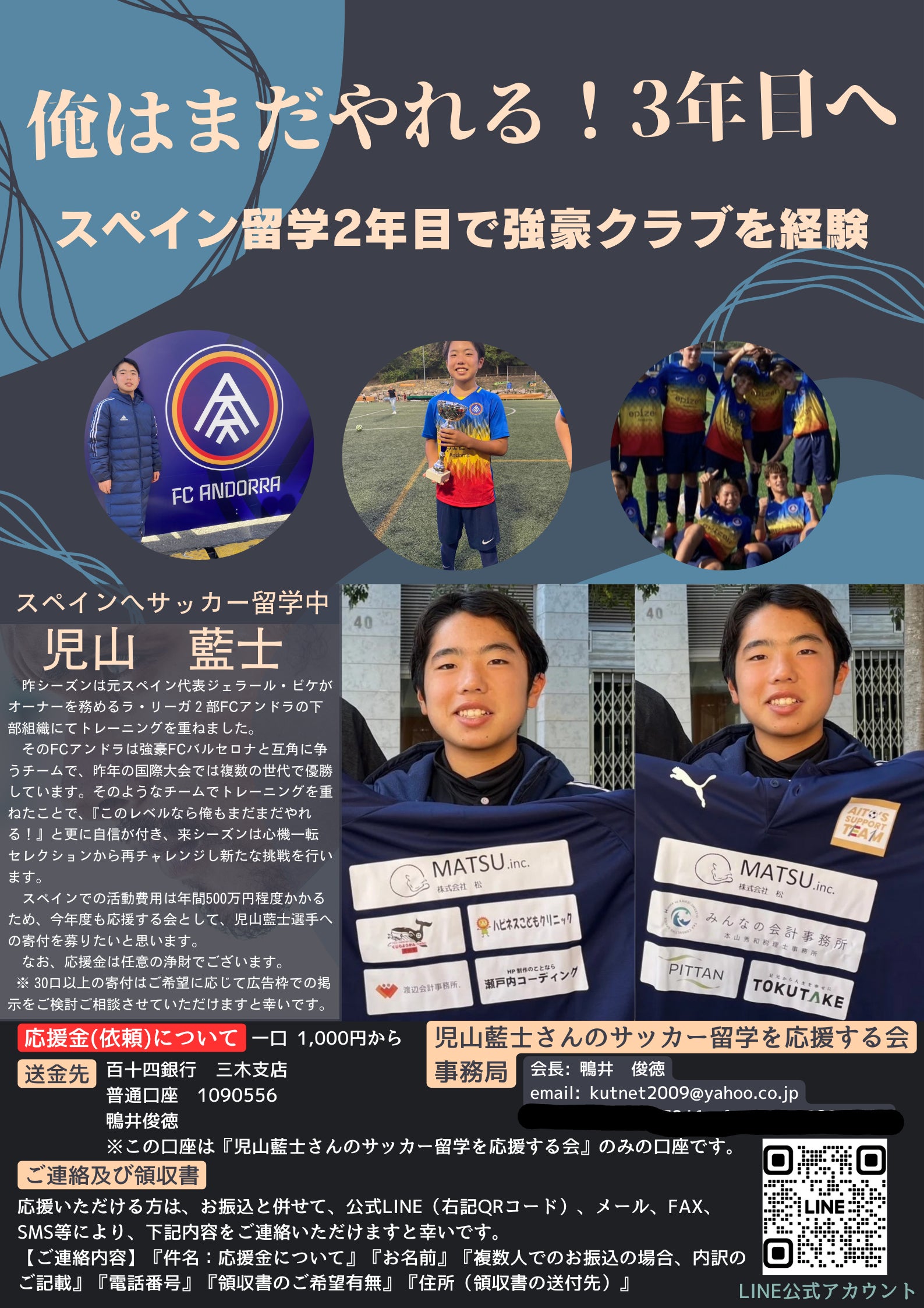 2025/05/31 23:40今シーズン、ここまで頑張ってきましたが、手続き上の不具合等が重なり、選手登録ができませんでした。現在、チームのGMがスポーツ仲裁裁判所に訴え、AITOの選手登録ができるよう奔走してくださっていますが、結果は変わりそうにありません。AITOとしてもせっかくスペインにまで来て、チームも決まり、ここで一泡吹かせたいと意気込んでいましたが、試合に出場できないため6月から帰国することを選択いたしました。皆様方にはご報告が遅くなり大変申し訳ございません。選手登録ができて、試合に出場した姿をお見せしたかったのですが、今後それは叶いそうにありません。ただ、AITO本人はまだまだプロになる夢を諦めていないとのことです!結果がどうなるかは誰にも分かりませんが、後援会としても今後のAITOの活躍を心から祈るばかりです。 もっと見る