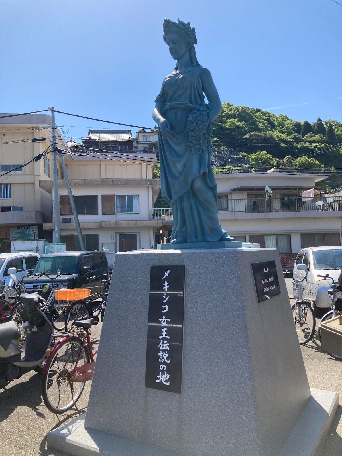 ▲島浦島に降り立つと、「メキシコ女王伝説の地」の碑が立っています