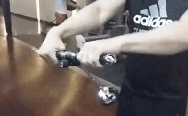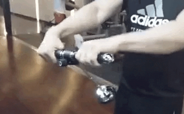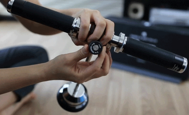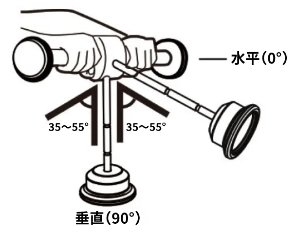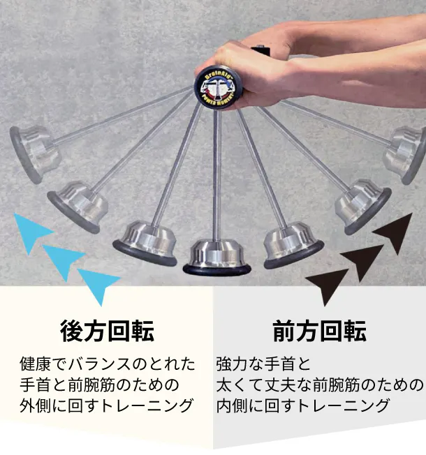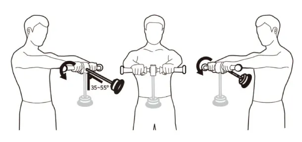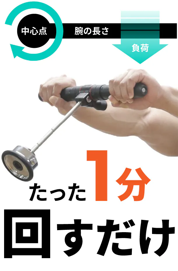 運動時に下部にあるおもりがまっすぐ下に向いている時は運動負荷は最小です。逆に水平に向いている時に運動負荷は最大になります。運動角度は35〜55°を推奨しています。