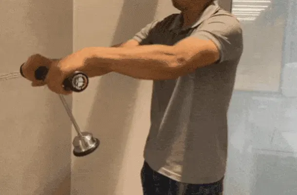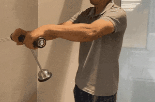 どちらに回しても赤いポインターが見えるように角度と高さを維持して運動すると、効果は最大化します。