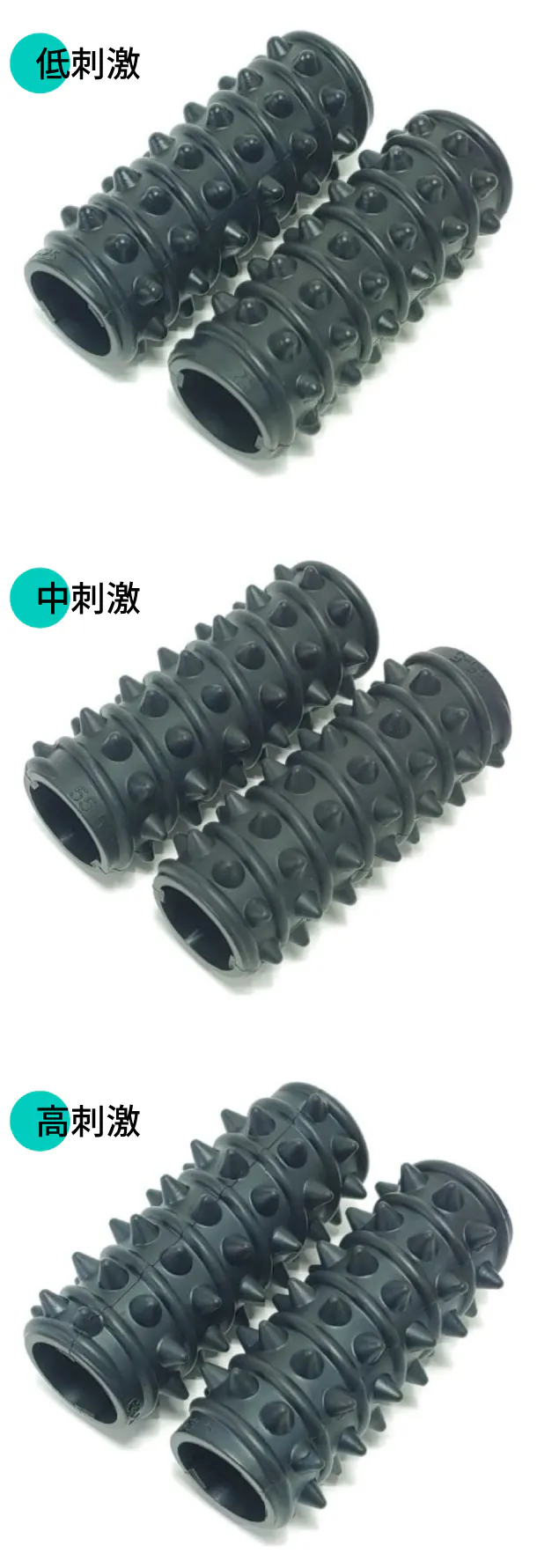 ・低強度、中強度、高強度の3つのシリコン指圧グリップから自分に合ったものを選択出来ます!