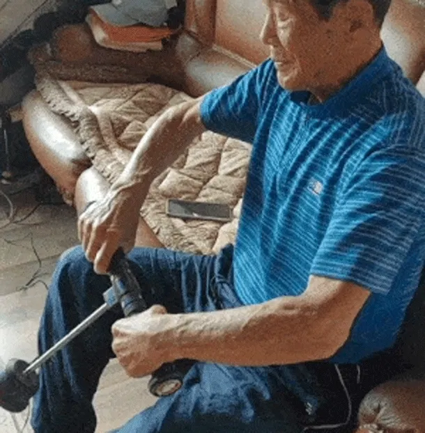 88歳の方が、なんとブレインエイドで1.58kgの負荷でトレーニング!握力も50kgで、これは同年齢平均握力より約10〜15kg高い数値です。