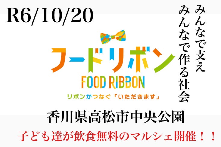 今年10月20日(日)香川県の高松中央公園にてフードリボン加盟店による、小学生以下のお子様の飲食が無料になるマルシェを開催する事となり、ご支援を募りたい。300円毎に1つリボンが配布され、対象のお子様がリボンをフードリボン加盟店に持って行くと300円相当の商品と交換出来る仕組みとなっております。