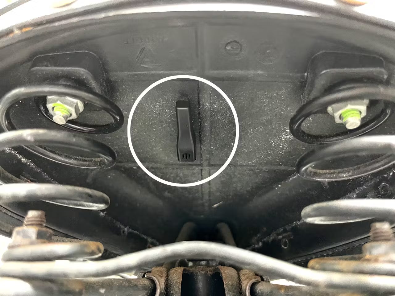 MAMORIO MEGANEを自転車のサドルの裏側に設置しておけば、手元から離れた時にお知らせがもらえます。