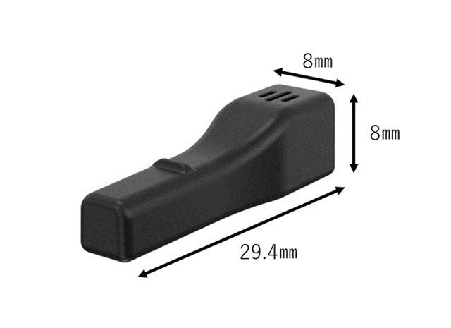 MAMORIO MEGANEの形状は、長さ3cm以下、最も太いところでAirTagと同じ厚みの8mm、細いところだと5mm。さらに重さは、わずか2gのMAMORIO史上もっとも小さいサイズを実現しました。