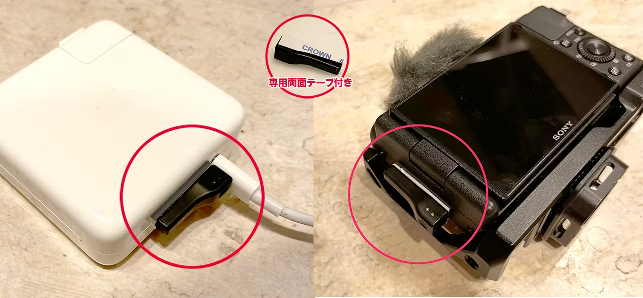 MAMORIO MEGANE専用の両面テープを使うことで、充電器や電子機器類などにも取り付けが可能です。しかも小型なので、電子機器類につけてもあまり気になりません。