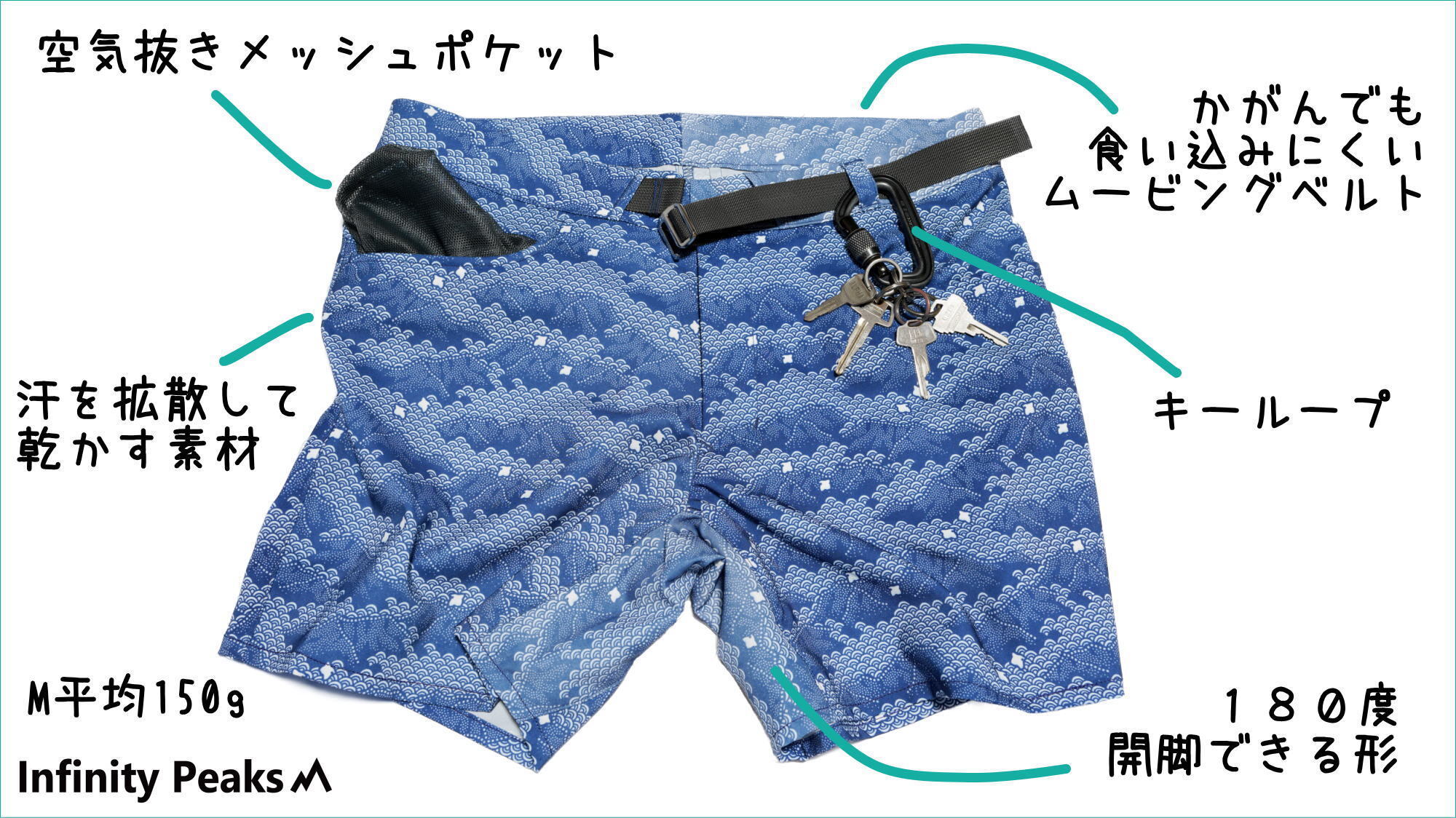 そんな想いを込め、伝統工芸の継承者さんや日本の工場とアウトドアで使える化学繊維で「さらっさらなショートパンツ」を作りました