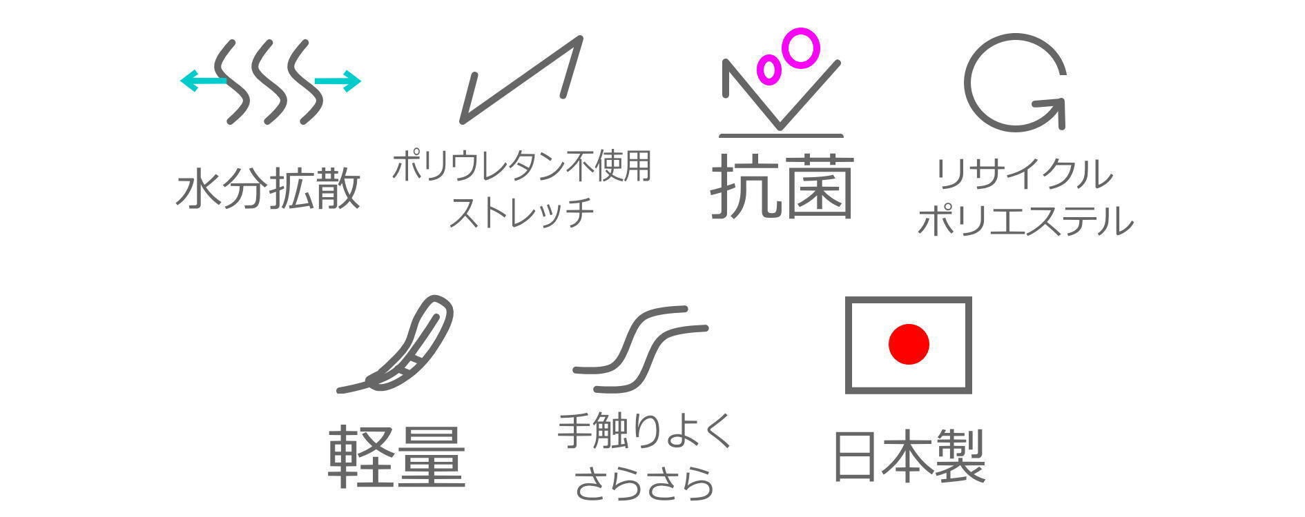 ②素材機能:通気性があり、汗が拡散し乾きやすくなるウィッキング素材を使用