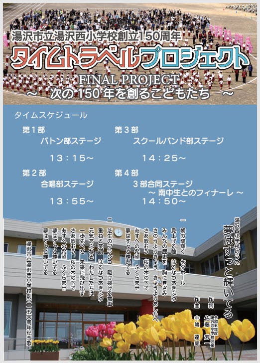 湯沢西小学校の子どもたちはもちろん、保護者や地域の皆様、これまでご支援いただいた方々にぜひご覧いただきたいと存じます。