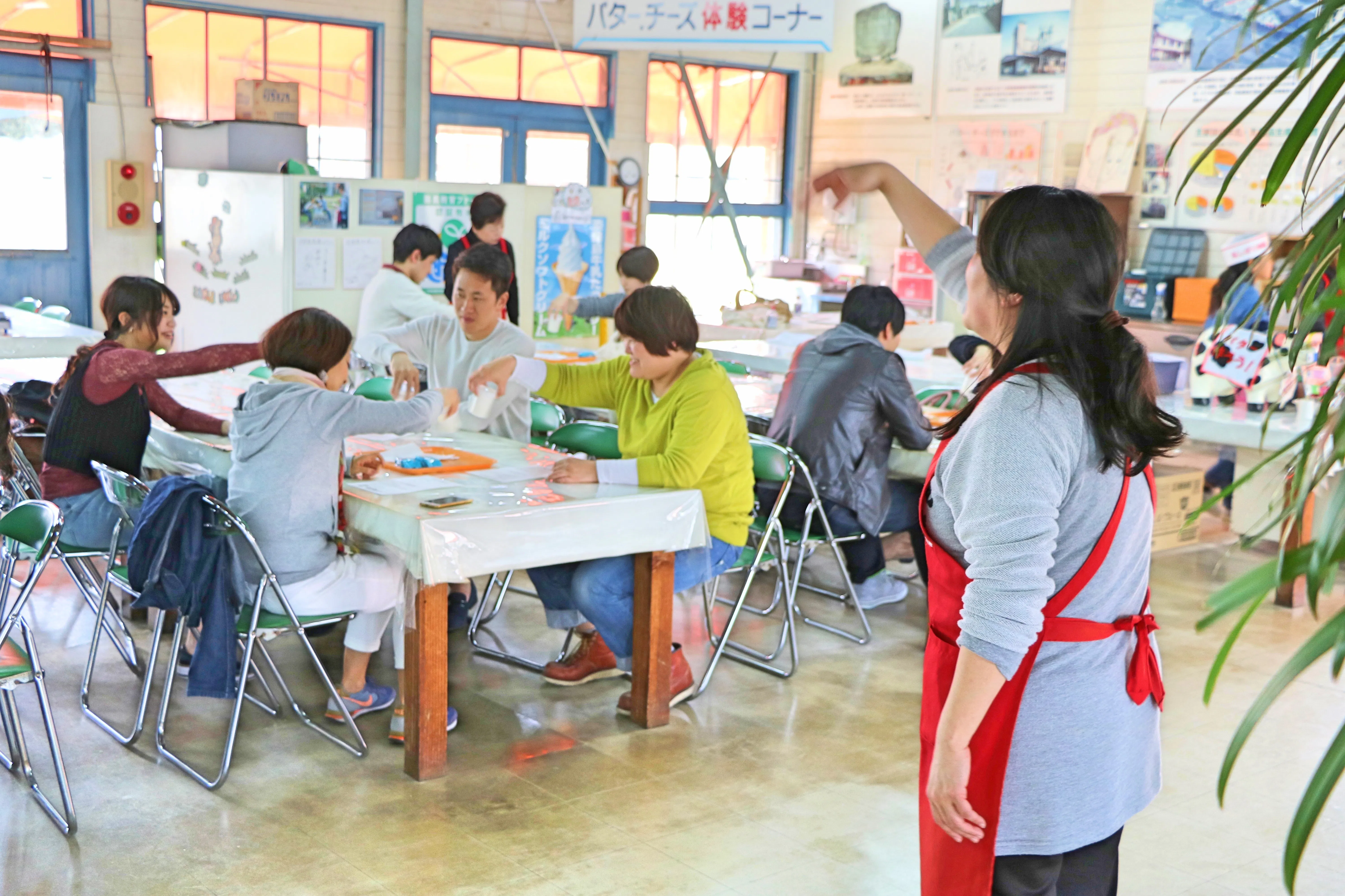 淡路島牛乳を使って、自分だけのオリジナルバター作りを体験できます。その場でクラッカーにつけて食べていただくので、出来たての味を楽しめます!