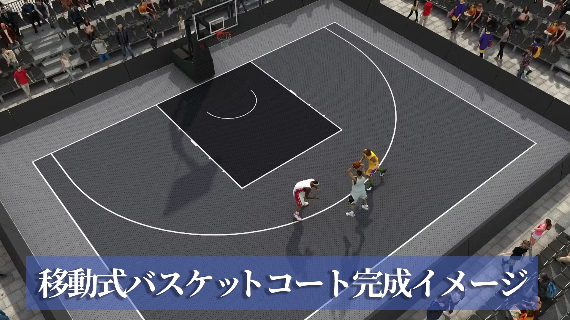 今回のクラウドファンディングでは、移動式バスケットボールコートを購入することを目指しています。この移動式コートを使えば、さまざまな場所でバスケットボールの大会を開催し、子どもたちは無料で大会に参加し、SAKURA FUNABASHIの現役選手によるバスケットボールクリニックを開催することが実現できると考えています。