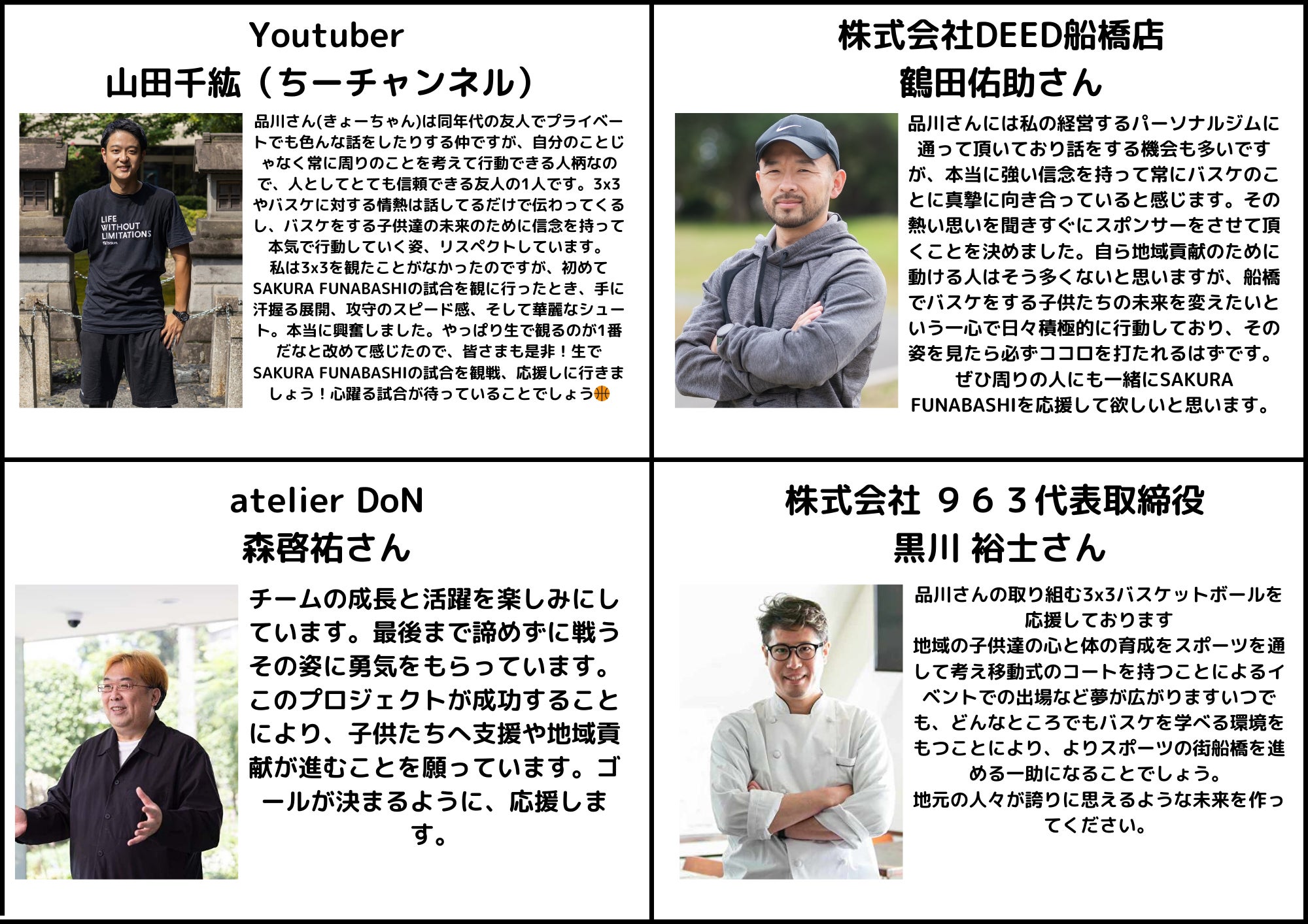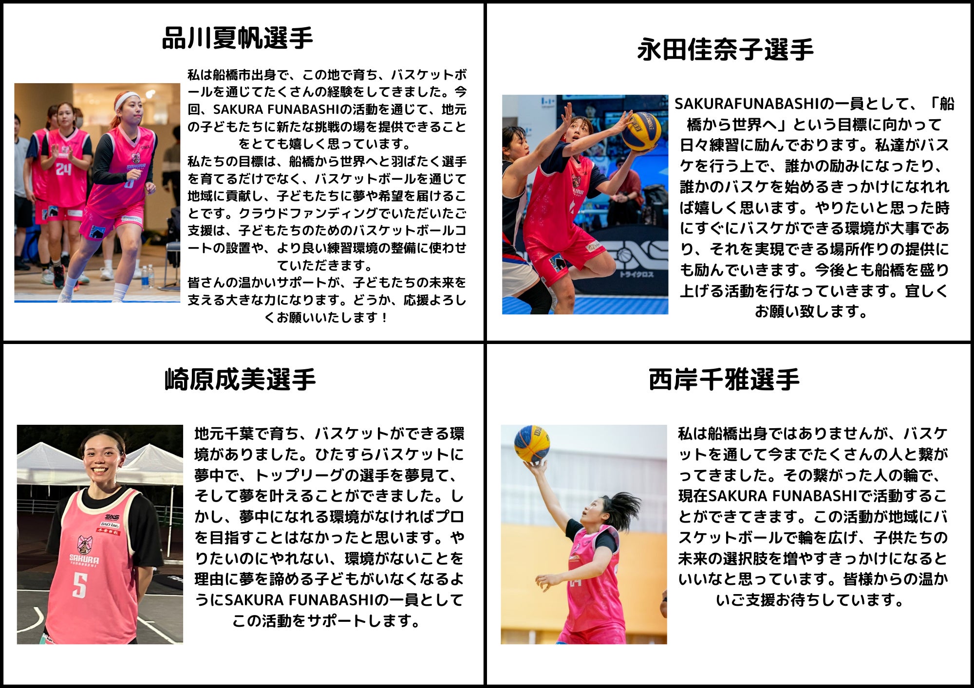 ここまで読んでいただき、心から感謝します。私たちは、ただバスケットボールをプレーするだけのチームではありません。SAKURA FUNABASHIは、夢を追いかける勇気を子どもたちに伝えるために存在しています。日本ではまだ3x3バスケットボールの認知が低く、子どもたちが試合に出る機会も少ない現実があります。それならば、私たちがその環境を作り出します。