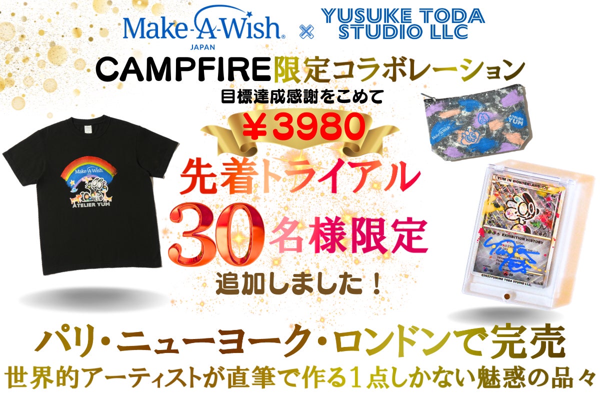 これらのリターン品は、すべてアーティスト戸田 悠理が手書きしたデザインに加え "CAMPFIRE限定トライアル価格"で、グッとお得に!お手軽にご支援頂ける☆トライアルプラン☆となっております。