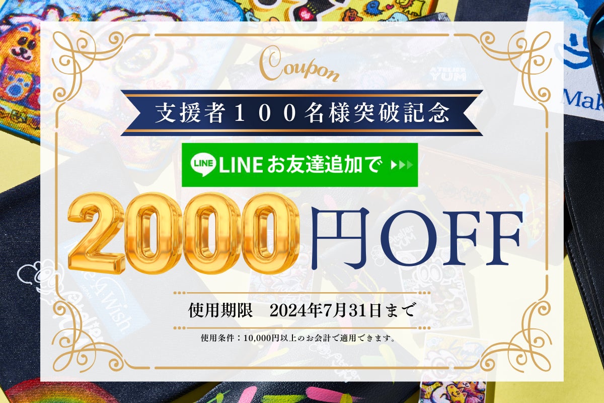 そして、ご支援者が100人に達しました!感謝の気持ちを込めて、公式ライン「ATELIER YUM」にお友達登録いただいた方には、7月20日の昼12時オープンの新しいECサイト「ATELIER YUM」で使える2000円オフクーポンを配布いたします!
