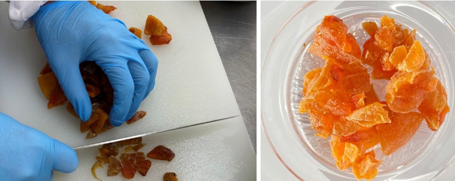 ③柿ドライを細かく刻む