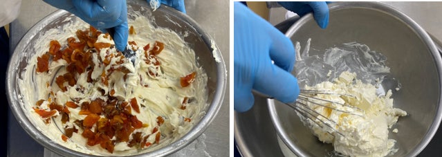 ④柔らかくしたクリームチーズに刻んだ柿ドライ、アーモンドを混ぜる
