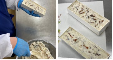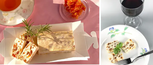 私たちはイタリアのカッサータをイメージして北海道産クリームチーズに地元伊吹の平核無柿で作ったドライフルーツ“あんぽ柿”を混ぜて冷やし固める、アイスケーキのようなスイーツを目指します。