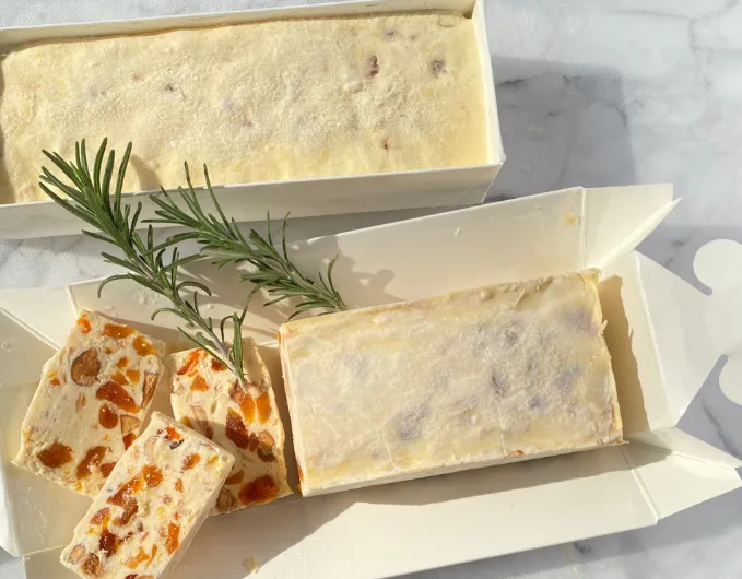 カッサータとは、イタリア・シチリア発祥の伝統的なスイーツです。正式名称は「カッサータ・シチリアーナ」。その歴史は古く、16世紀には元となるスイーツが作られていたといわれています。私たちはイタリアのカッサータをイメージしてクリームチーズに地元伊吹の平核無柿をつかったドライフルーツ“あんぽ柿”を混ぜて冷やし固める、アイスケーキのようなスイーツを目指します。