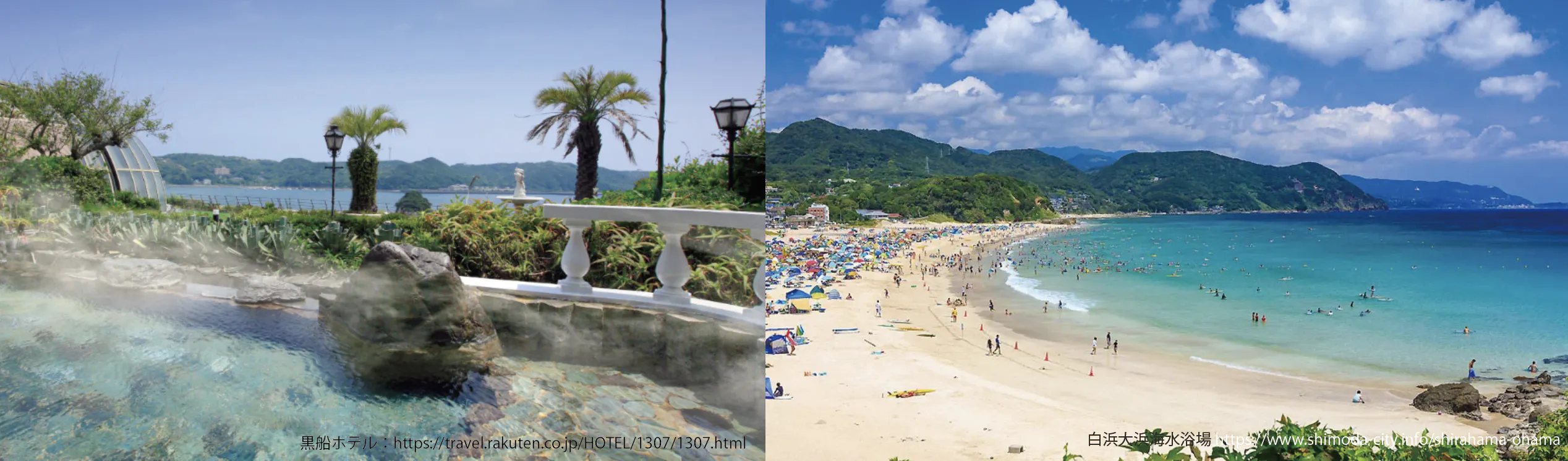 それ以外にも、下田温泉や水質AAランクの伊豆白浜海岸、爪木崎など、素晴らしい自然と海のアクティビティが楽しめるリゾート地でもあります。