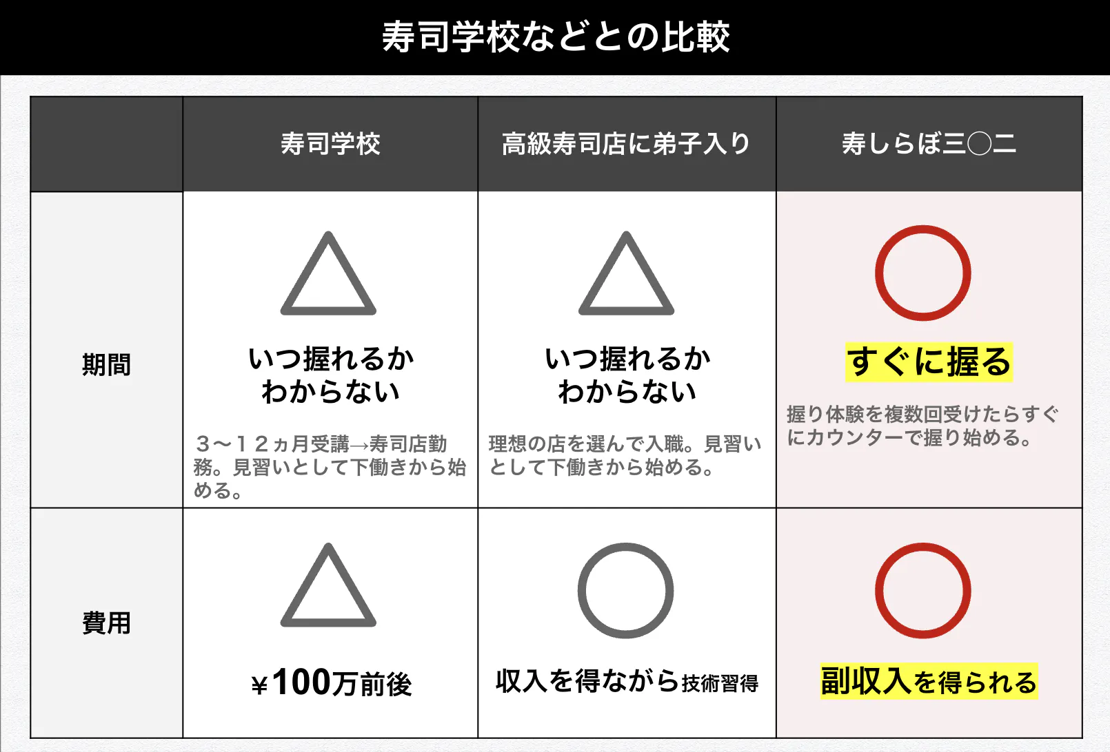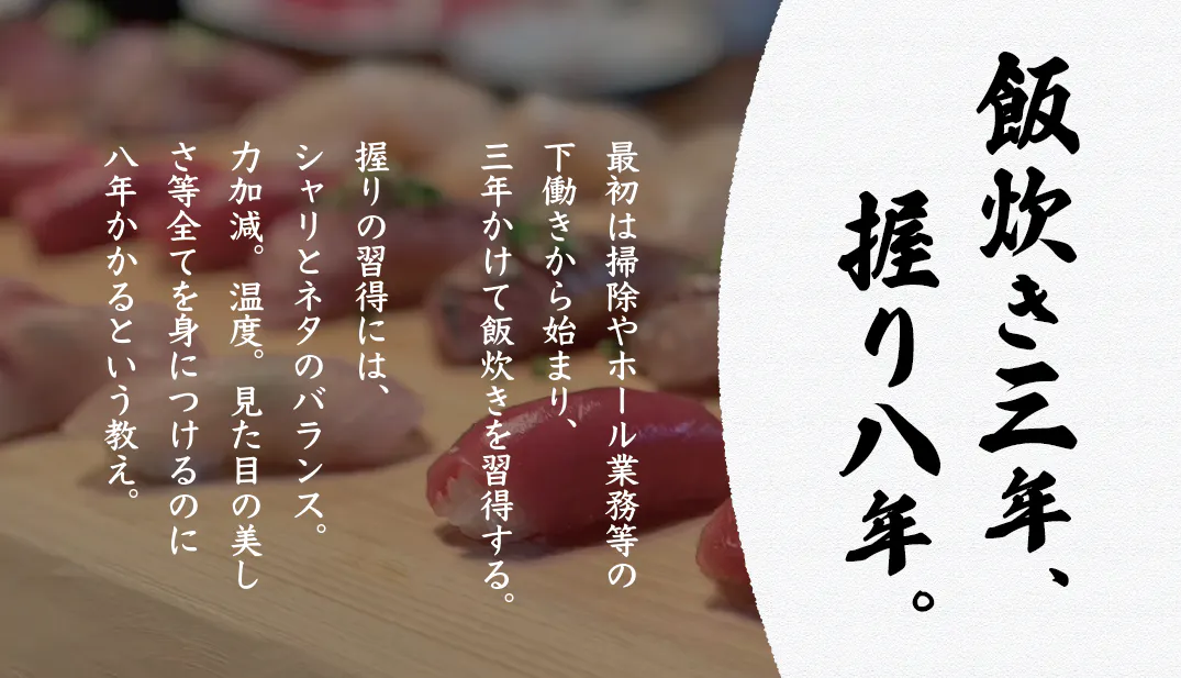 寿司職人として1~100まですべてを学ぶための、下積み修行の場でもありません。