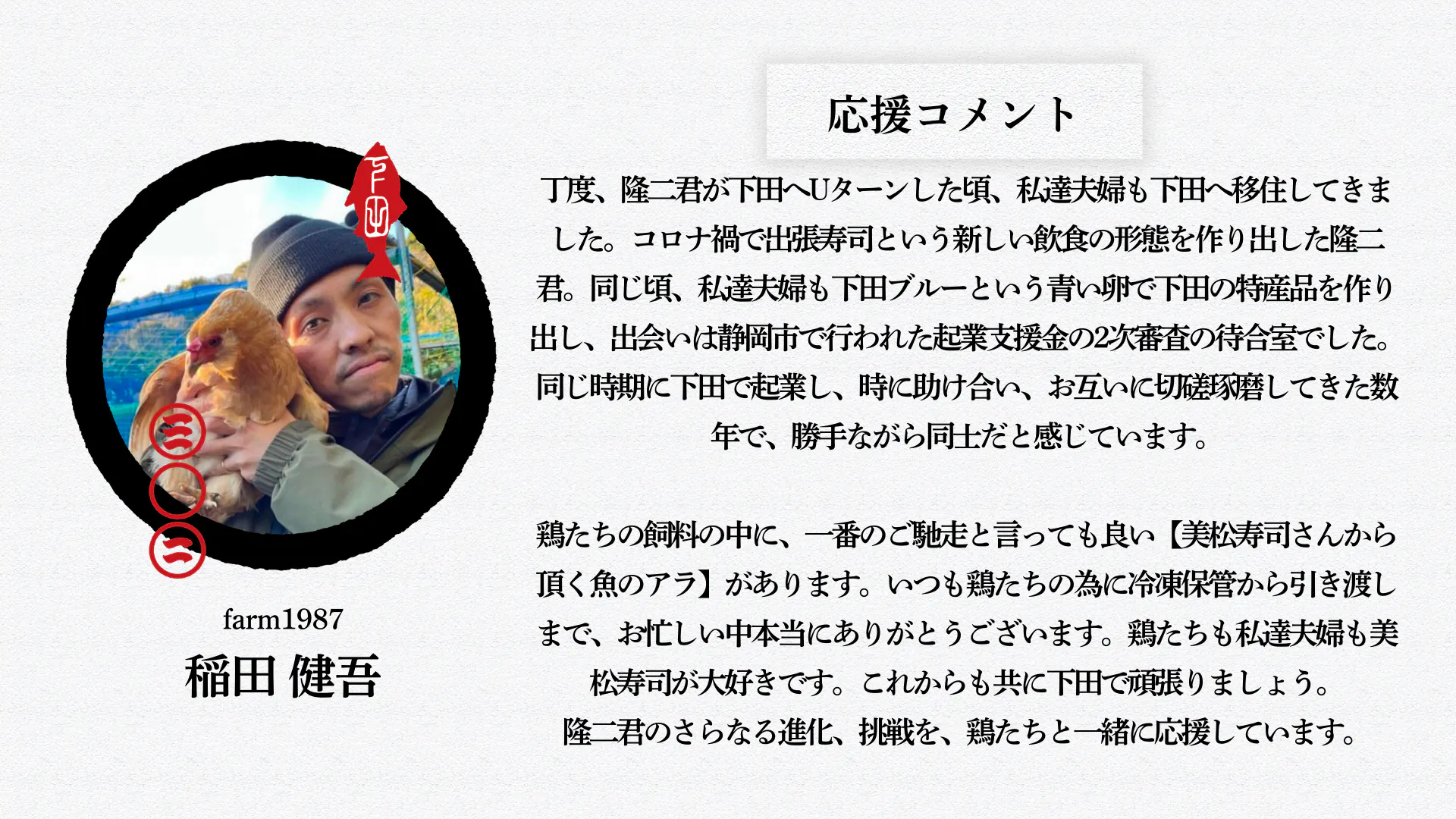静岡県下田市出身の33歳、実家は1936年から続く寿司屋『美松』を営んでいます。