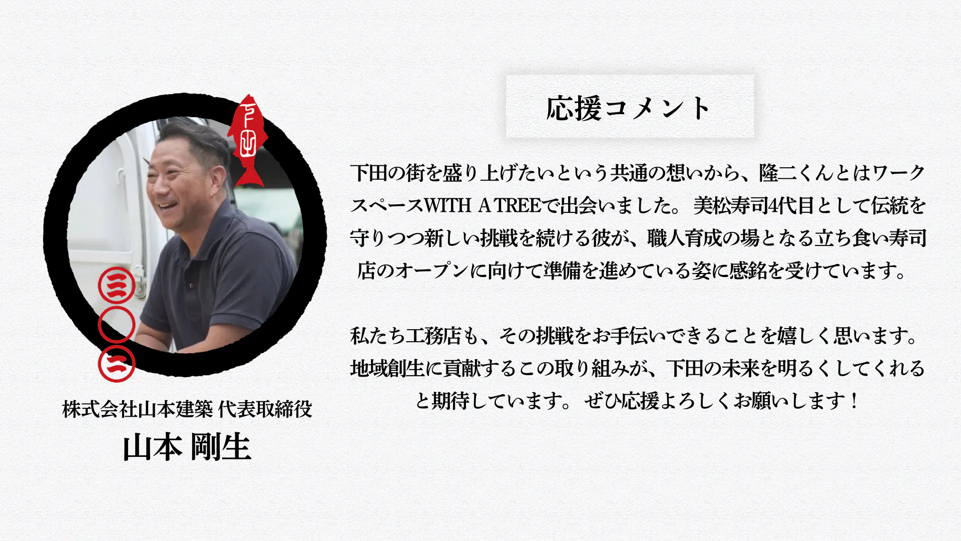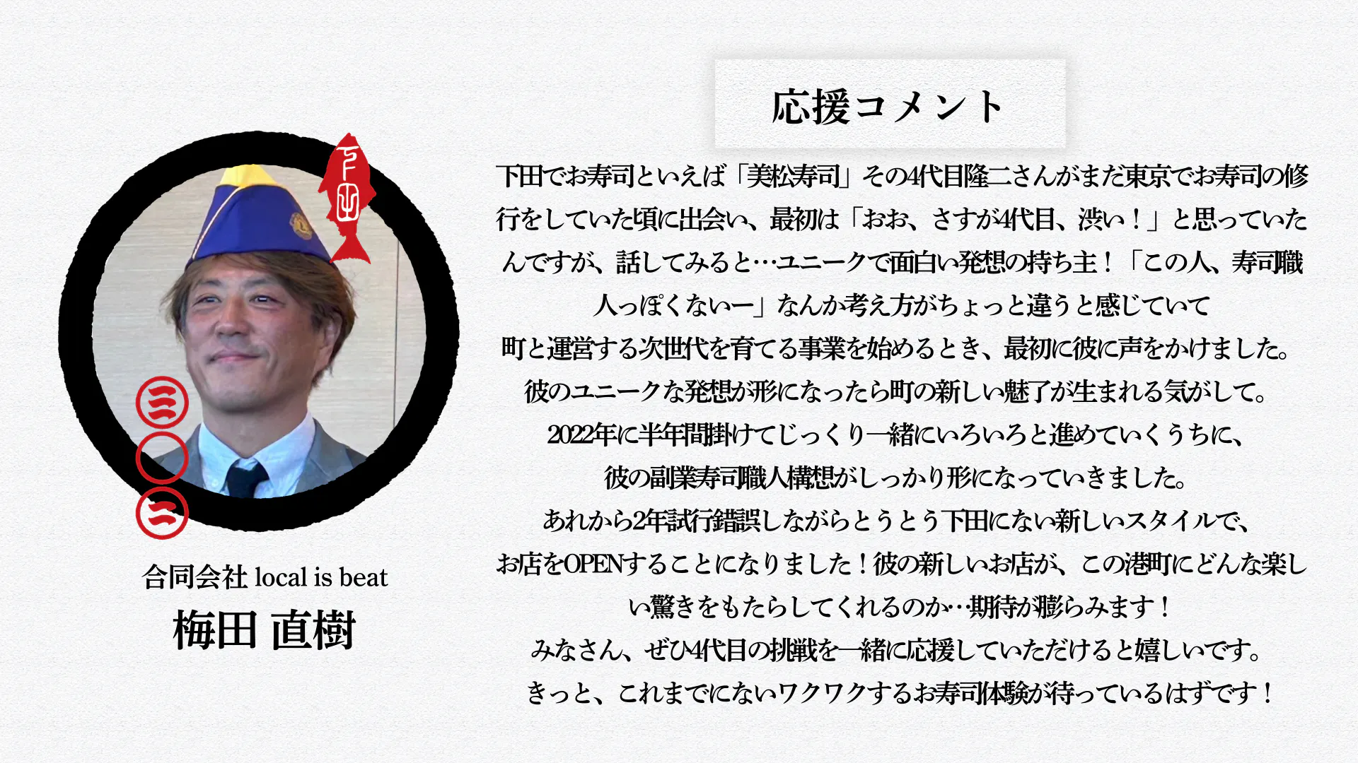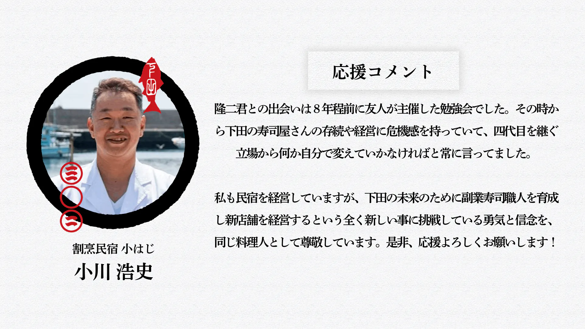同時にこの寿司の文化を、下田の文化を次世代に引き継ぐ事も考えなくてはいけません。