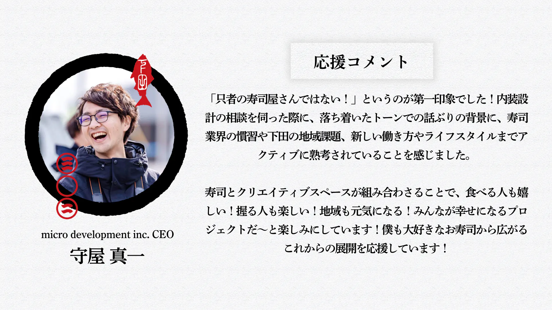 ❶下田を拠点に副業寿司職人という新しい働き方の提案をし、見習い職人たちの実践の場を創るために、寿しらぼ302の概要は以下の4つにまとめることができます↓