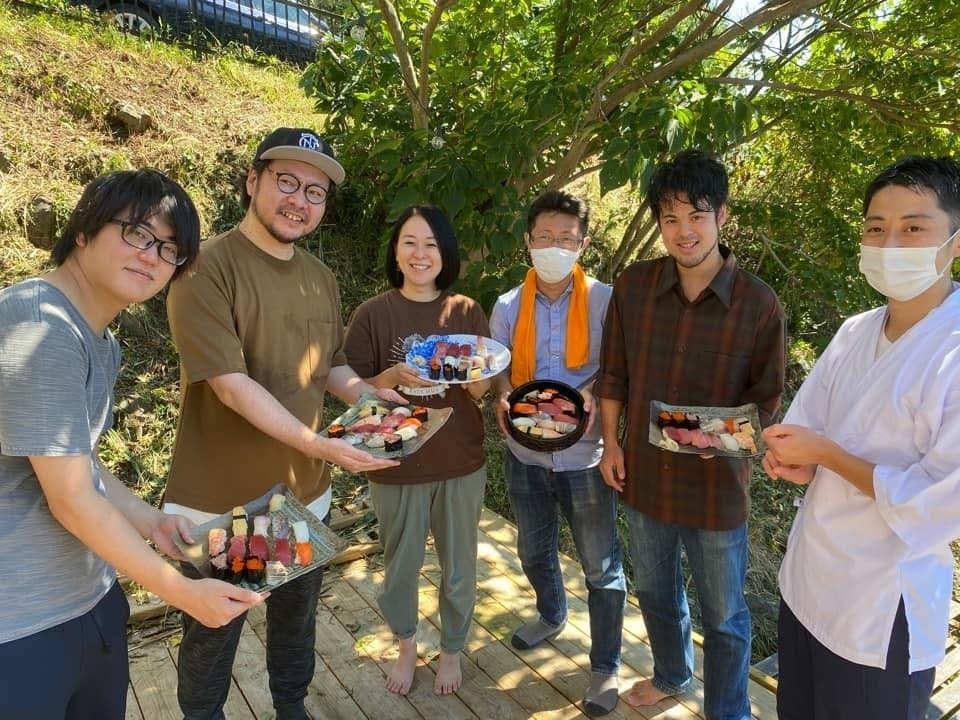 皆様こんにちは!副業寿司職人として寿しらぼ三◯二に関わることになったかべちゃんと申します。今日は隆二さんに変わって活動報告を書かせていただきます!本日、私は見習い寿司職人としてデビューしました!!神奈川県相模原市の自宅古民家に近所の皆様を15名ほど招待し、2時間で合計200貫以上握らせていただきました。今回ロゴデザインやクラファンのページ作成などで関わらせて頂いていましたが、寿司好きの私は、気づいたら本日職人側として寿司を握っていました・・・笑感想は・・・とにかく、握るの楽しい!みんなに喜んで頂けるのが嬉しい!隆二さんも師匠として同行頂いたのですが、ネタのクオリティは担保されつつ、みなさんが「かべちゃんが握ってくれるのが嬉しい!」というように寿司以外の点でも価値を感じてくださっているのが伝わって来ました。これが寿しらぼ三◯二で体験できる「本格的だけど人間味がある」ような独特の空気感なんだなあと、身にしみてわかりました。楽しいですね。(そして、ユニフォーム着ると、なんか「主役感」がでる。うん。楽しい。)しかし、まだまだ隆二さんのお手本のネタと比べるとシャリが不格好だったり、ネタがうまくシャリと一体化出来てなかったりと、発展途上な部分もたくさん見つかりましたので、これからも実践を積んでレベルアップしていきたいと思います!!