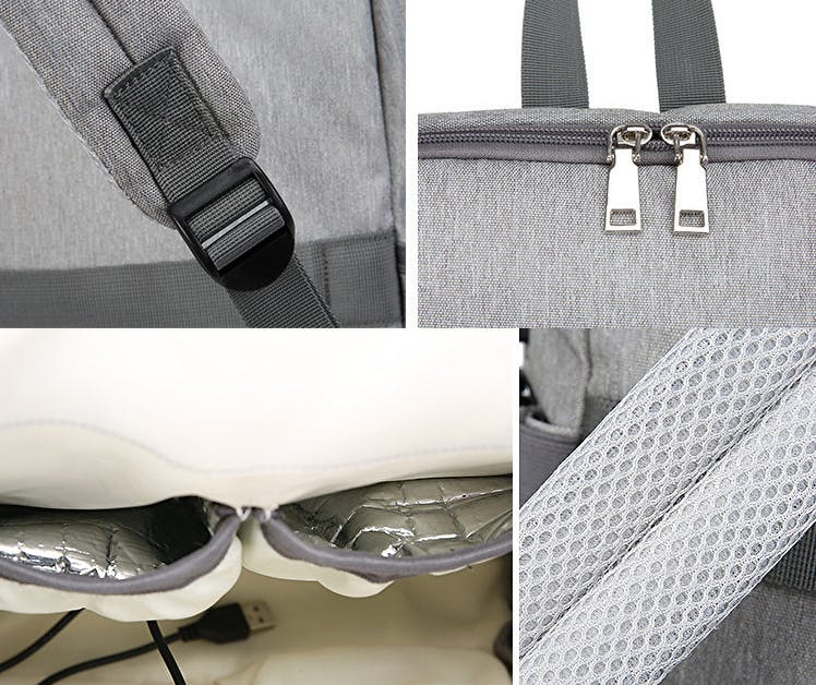 哺乳瓶専用ポケットは内側がアルミ箔で覆われており、ミルクを温かく保つことができます。